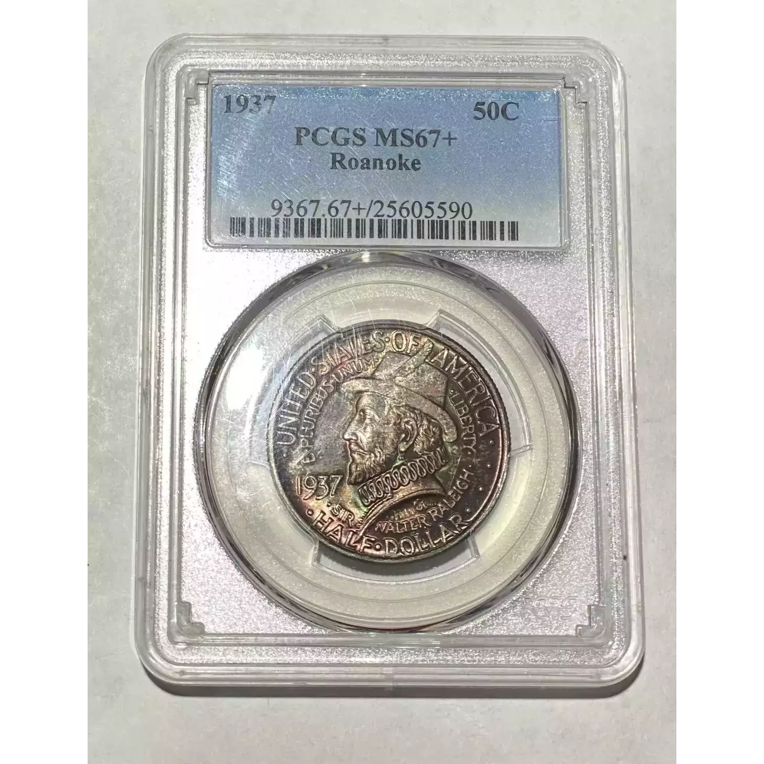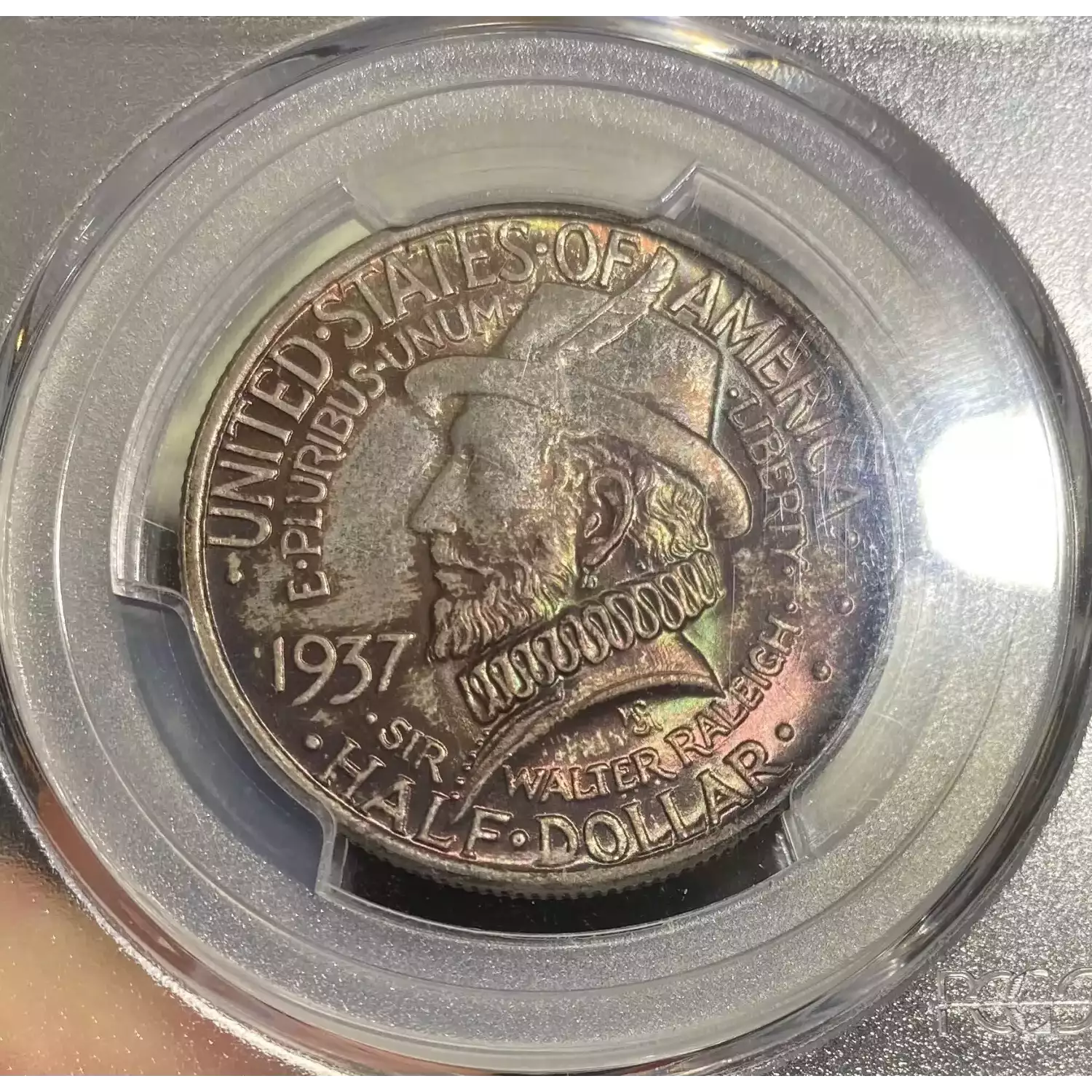 1937 50C Roanoke Rainbow Toning lots of luster not seen in picture