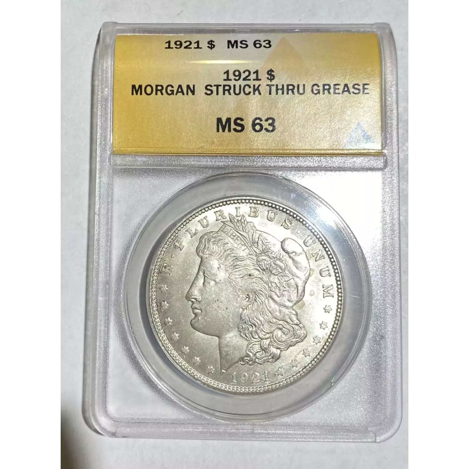 1921 Morgan Silver Dollar ANACS MS-63 STRUCK THROUGH GREASE