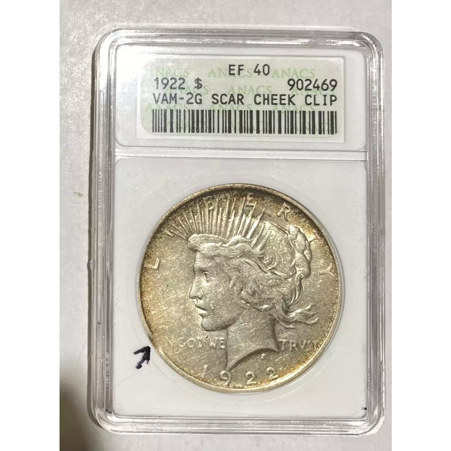 1922 Peace Dollar ANACS XF-40 VAM 2G Scar Cheek and CLIP