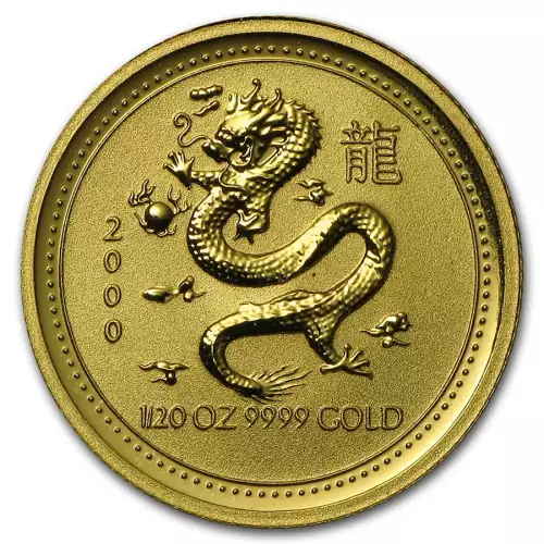 Each coin is available in 1 oz, 1/2 oz, 1/4 oz 1/10 oz, and 1/20 oz sizes. The 2000 1/20 oz Australian Perth Mint Gold Lunar: Year of the Dragon has a mintage of 29,325 coins.