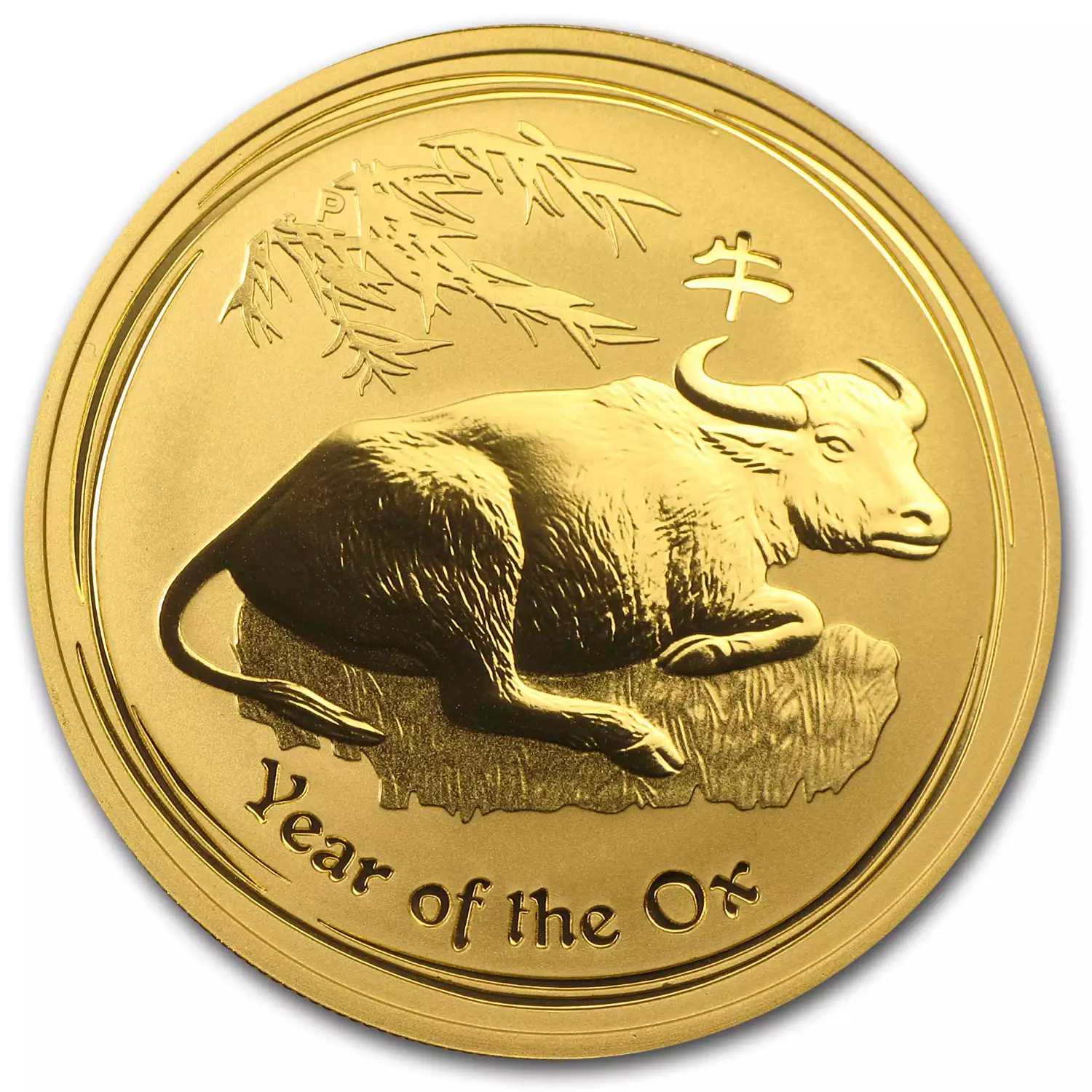 Each 2009 1/4oz Australian Perth Mint Gold Lunar II: Year of the Oxis composed of 0.25 troy ounce of .9999 pure gold.The obverse of the coin displays the Raphael Maklouf effigy of Her Majesty Queen Elizabeth II, purity and the monetary denomination. The reverse features an Ox lying on grass with bamboo branches above with the Chinese character for ‘Ox’ with the Perth Mint’s traditional “P” mintmark.