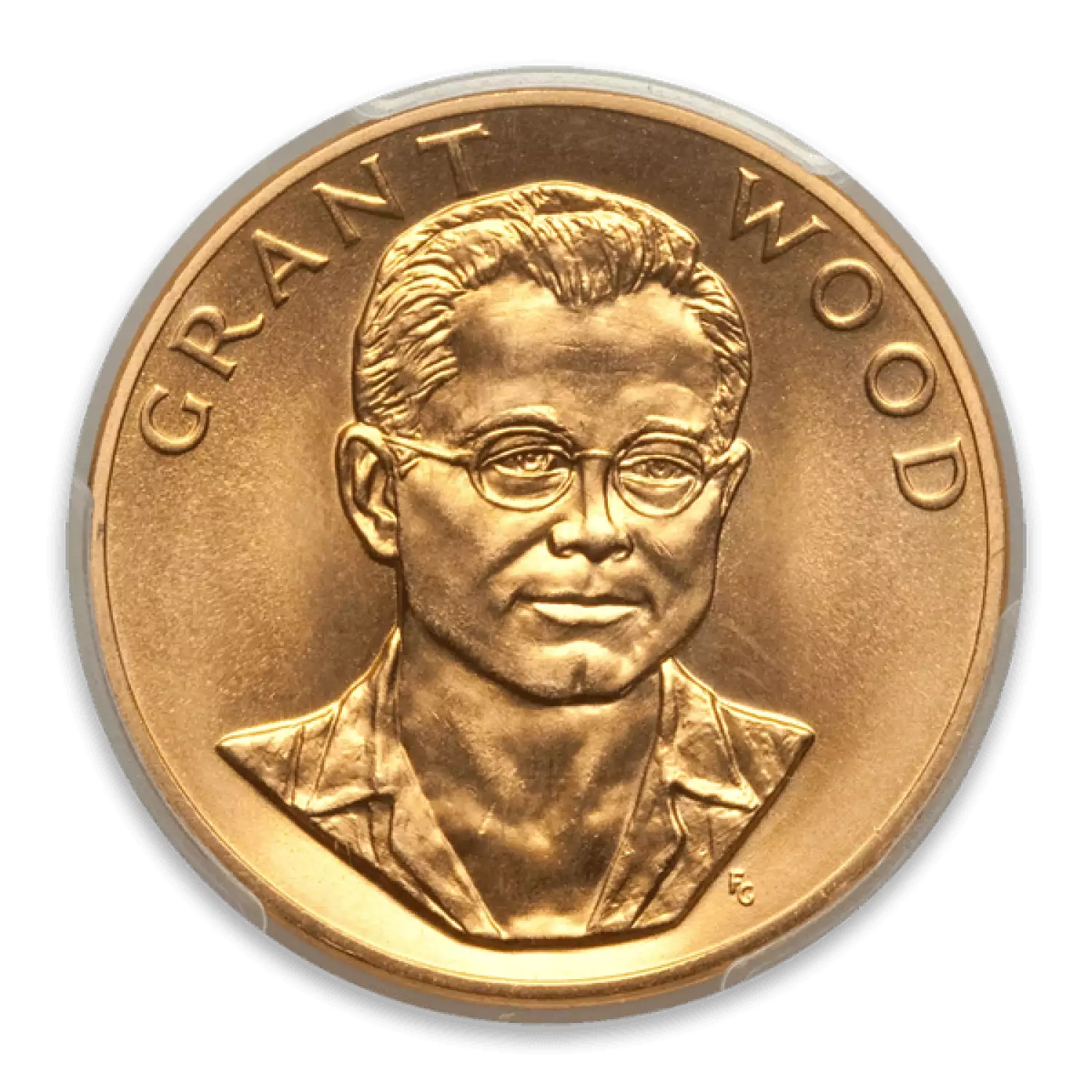 Each American Art Medallion - ½ oz is composed of 0.5 troy ounce of .900 actual gold content. The obverse of the medal features a different featured American artist each year and the reverse shows each of the artist's achievement.