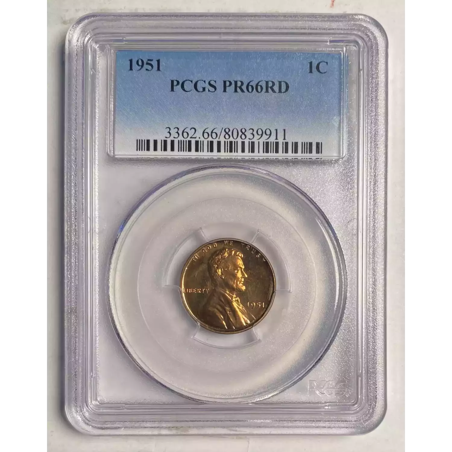 1951 Small Cents Lincoln, Wheat Ears Reverse PCGS PR-66 RD
