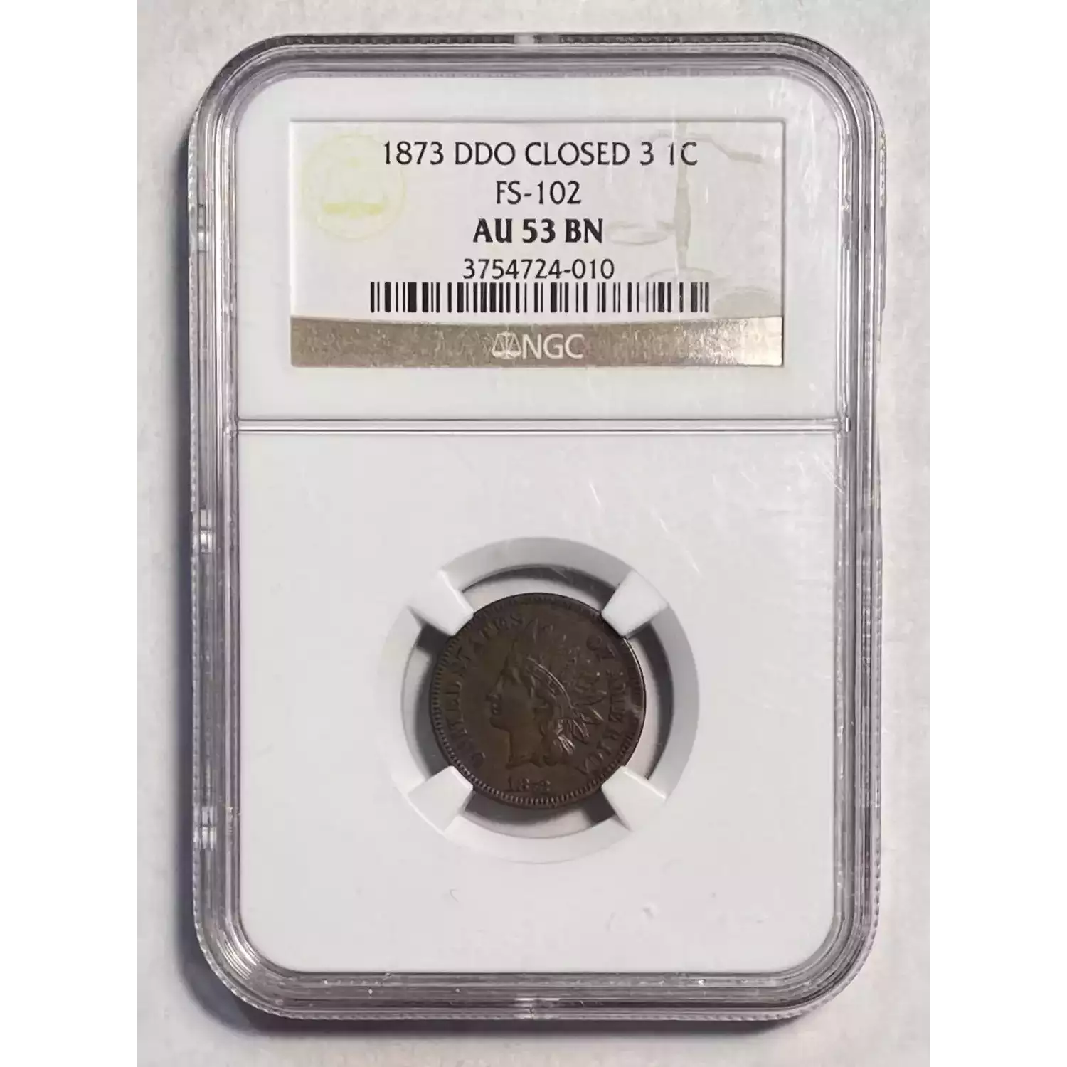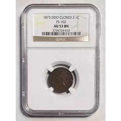 1873 Small Cents Indian Head NGC AU-53 BN FS-102
