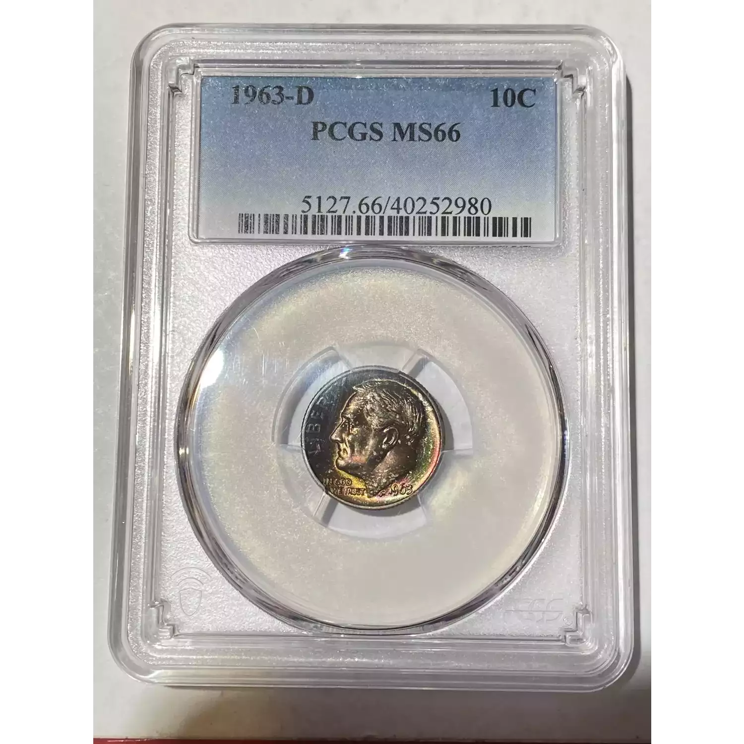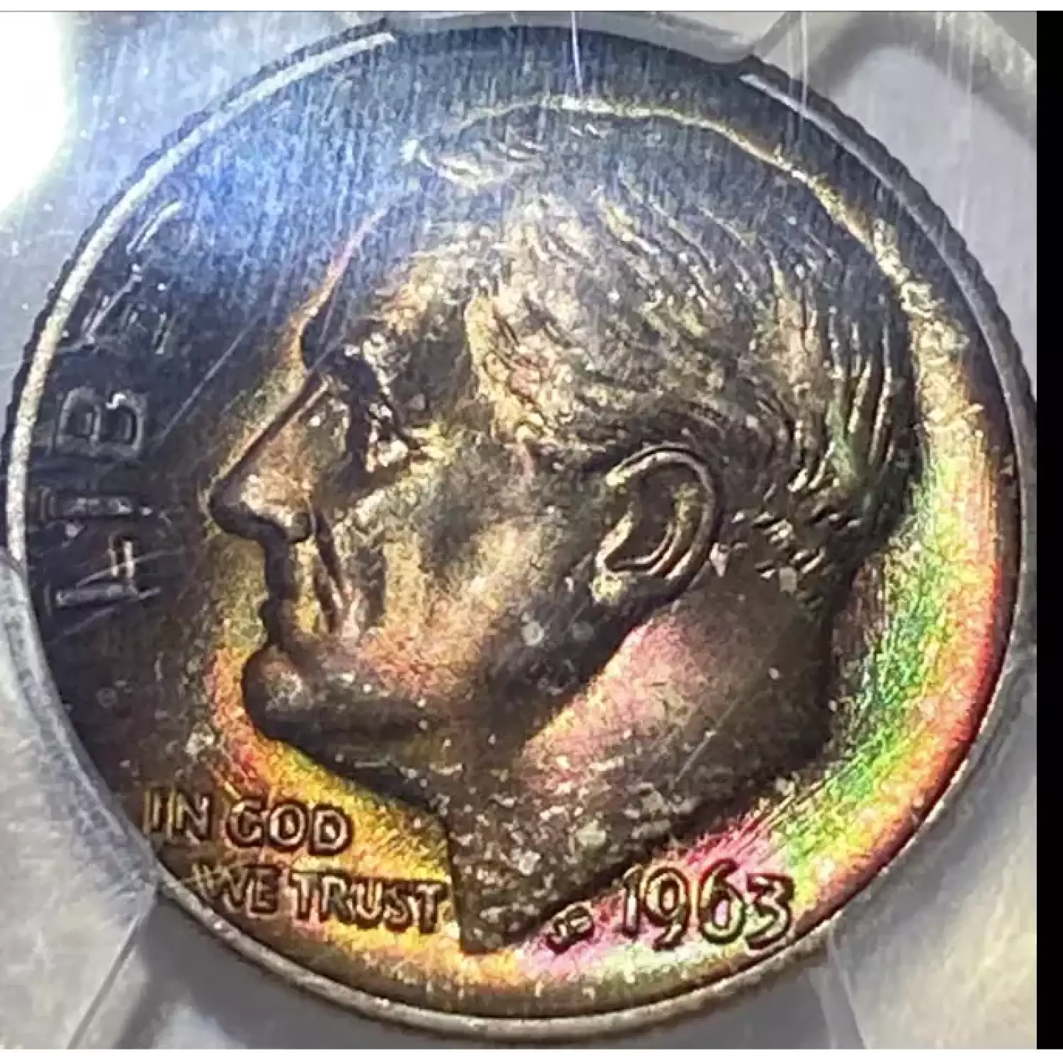 1963-D 10C Rainbow Toning