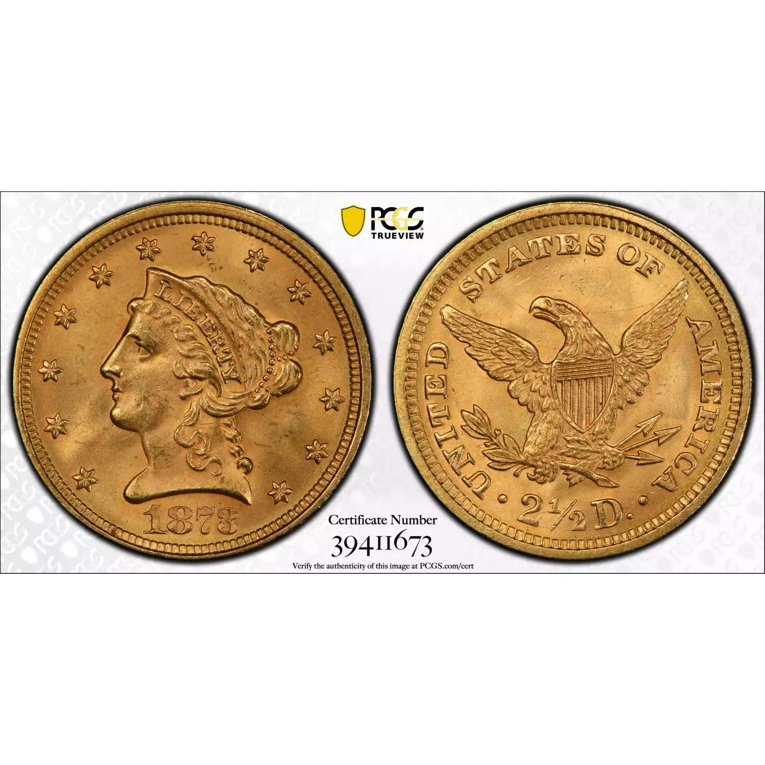 1873 $2.50 Gold Liberty Head Quarter Eagle PCGS MS-64+ Closed 3