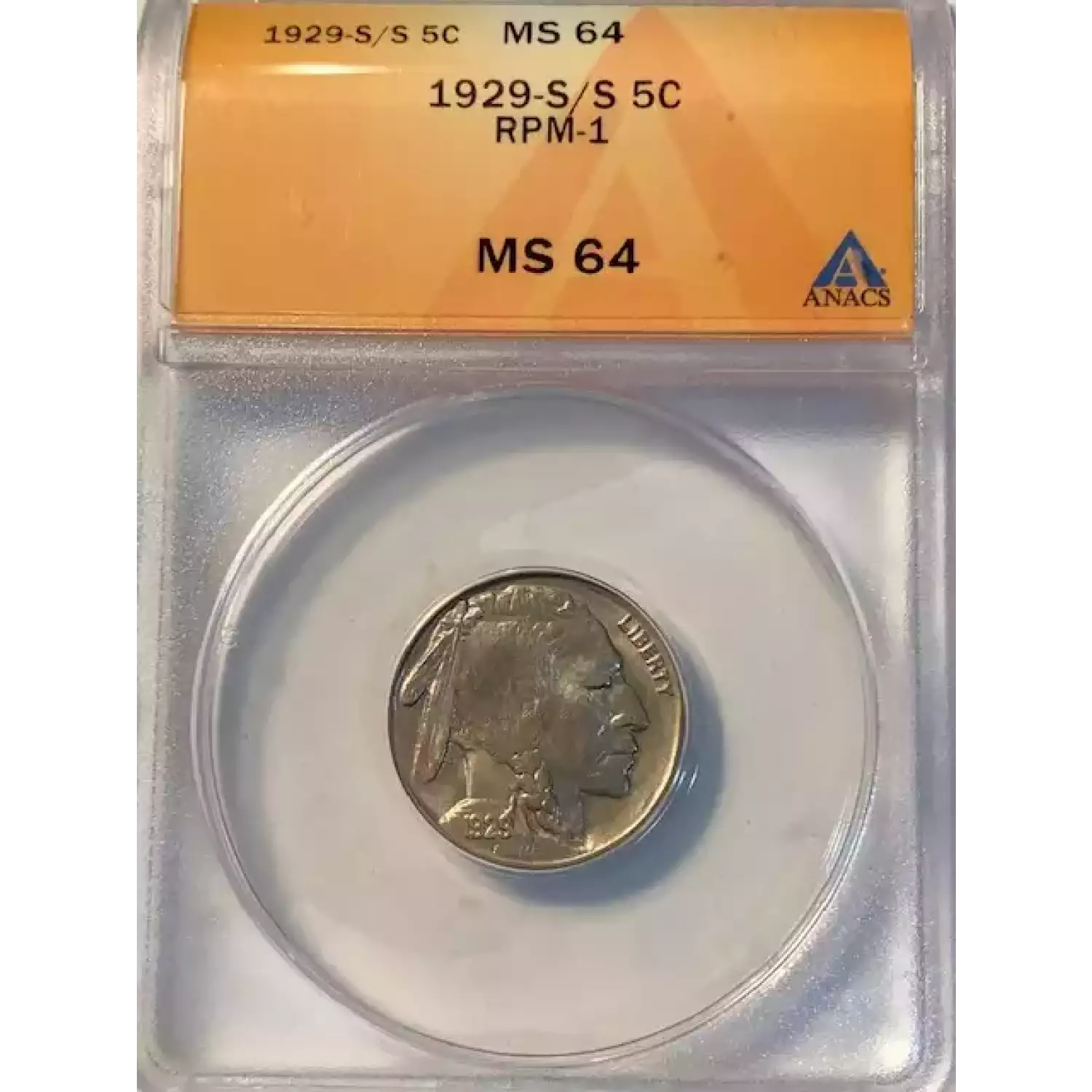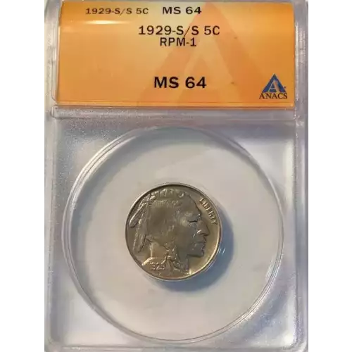 1929-S/S Buffalo Nickel ANACS MS-64 RPM-1