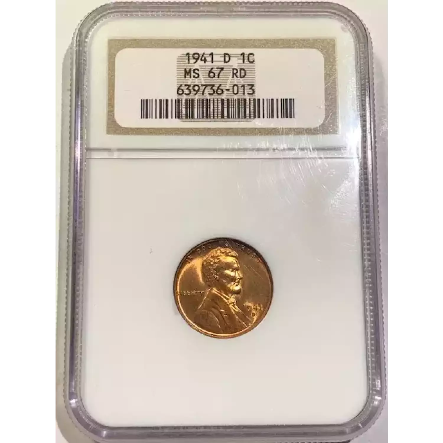 1941-D Small Cents Lincoln, Wheat Ears Reverse NGC MS-67 RD