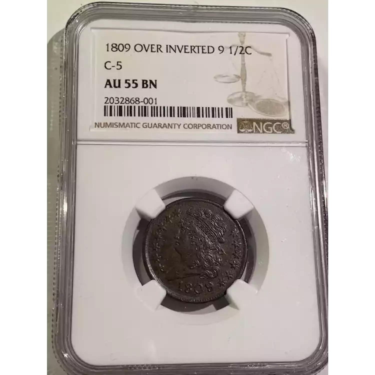1809 Half Cent Classic Head NGC AU-55 BN - Over Inverted 9 C-5