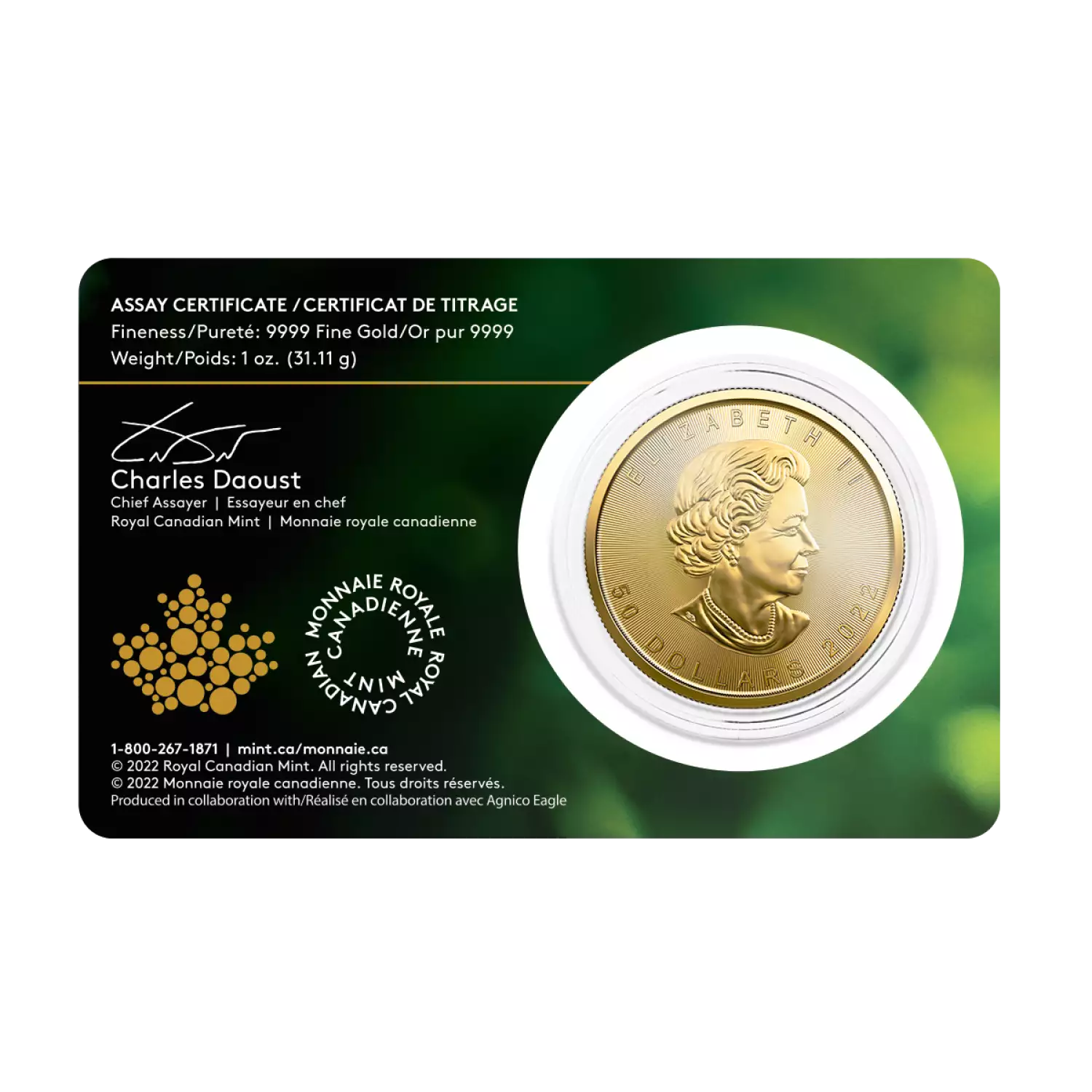 2022 1oz Canadian Gold Maple Leaf - Single Source Mine
