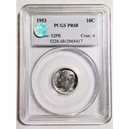 1953 Dimes Roosevelt PCGS PR-68 Sight White