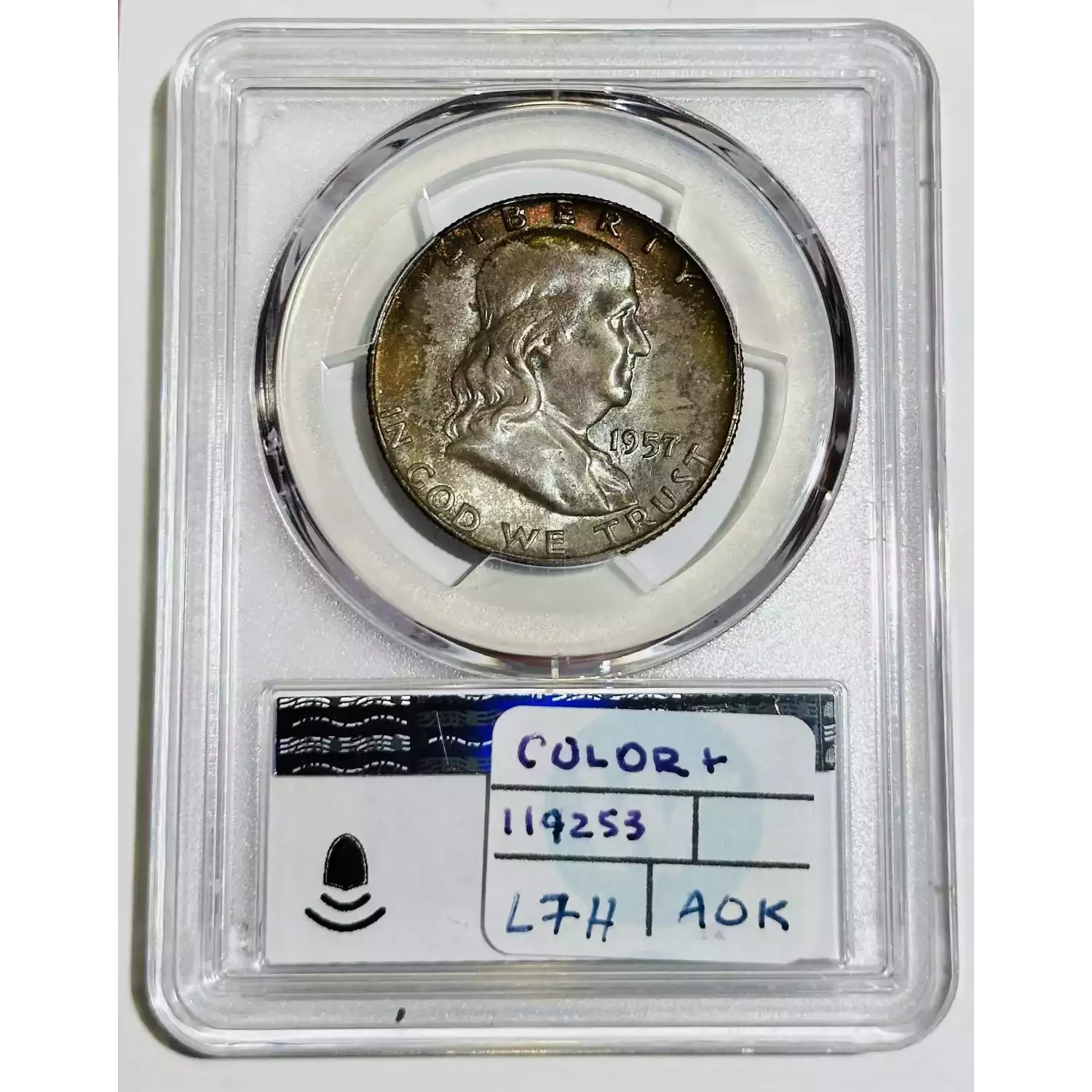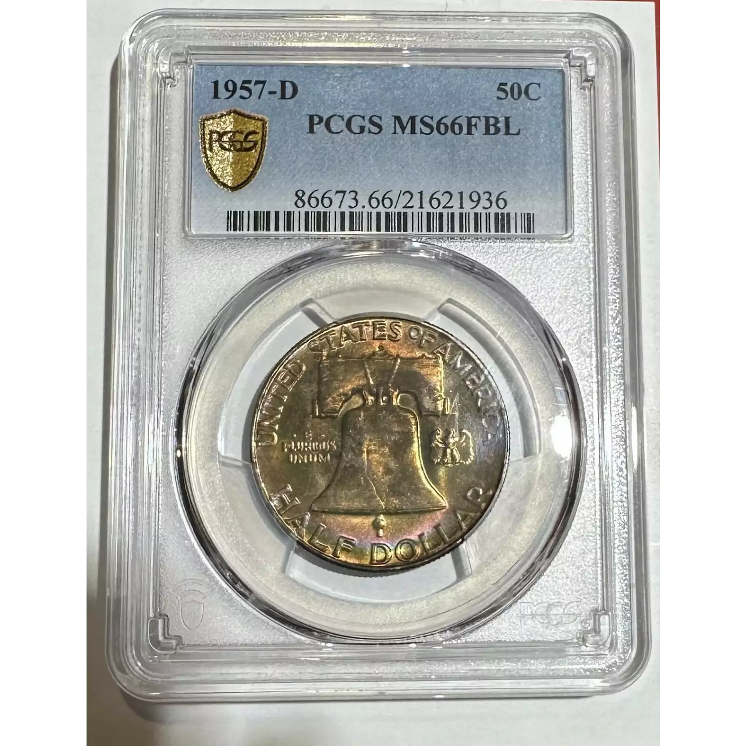 1957-D 50C, FBL Rainbow Toning