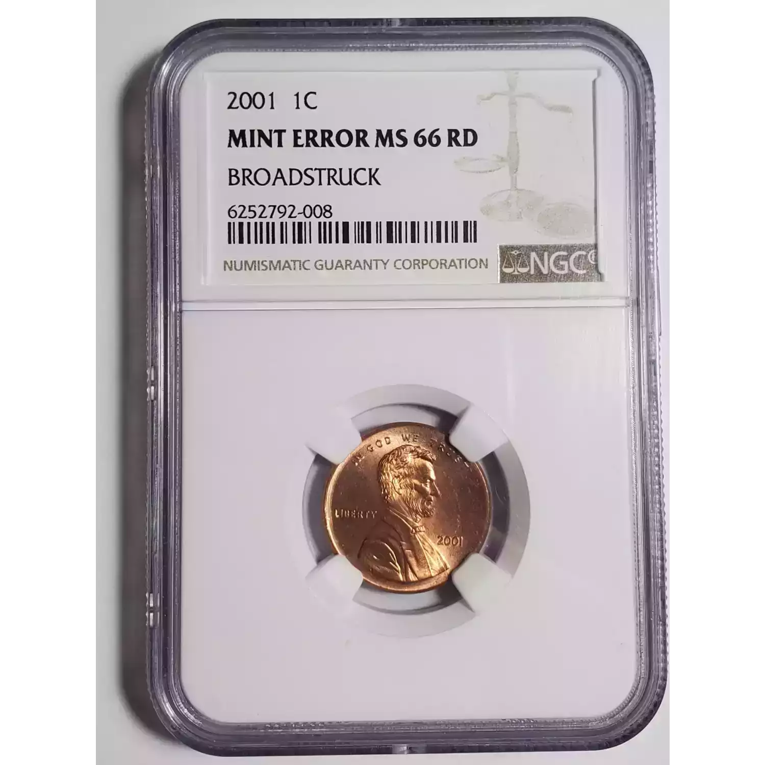 2001 Small Cents Lincoln, Memorial Reverse NGC MS-66 RD Mint Error - Broadstruck