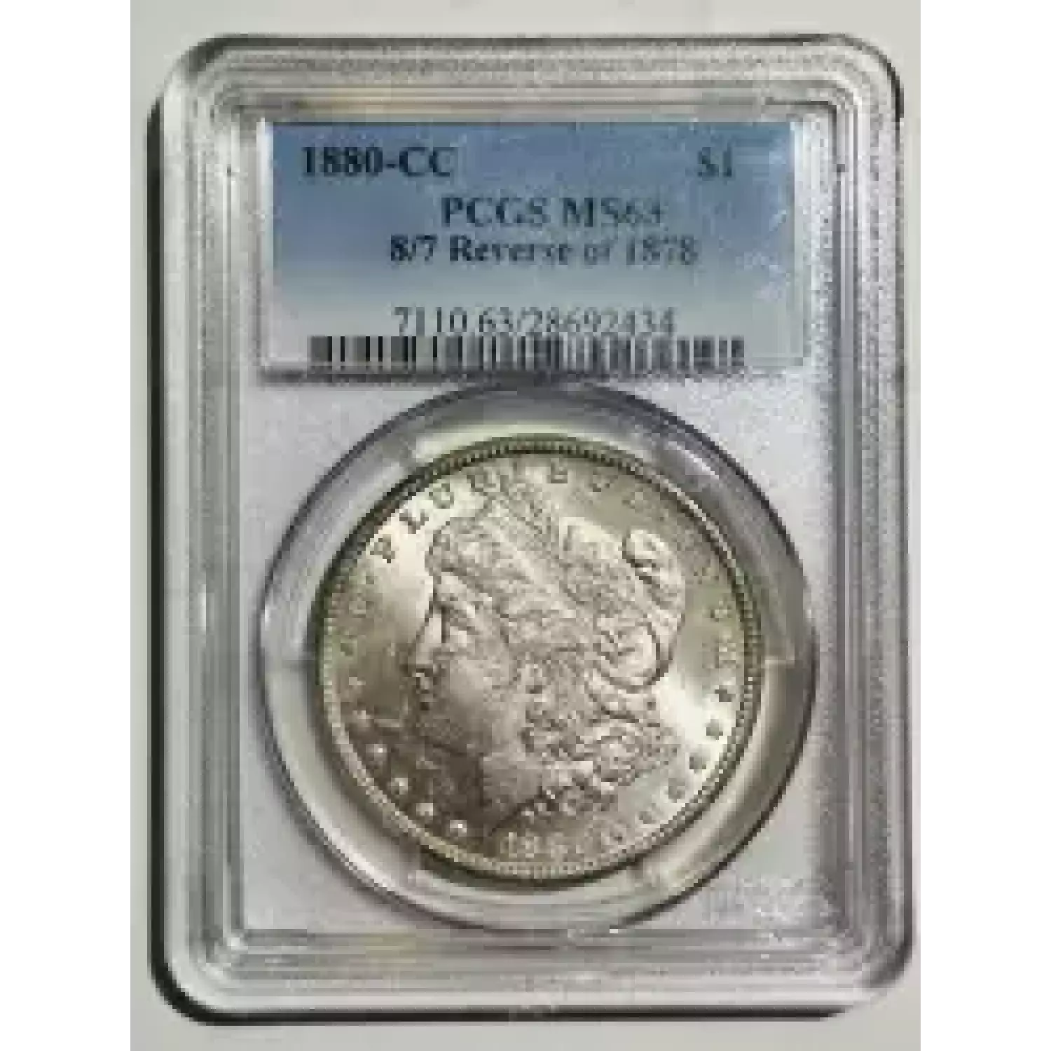 1880-CC Morgan Silver Dollar PCGS MS-63 8/7 Reverse of 78
