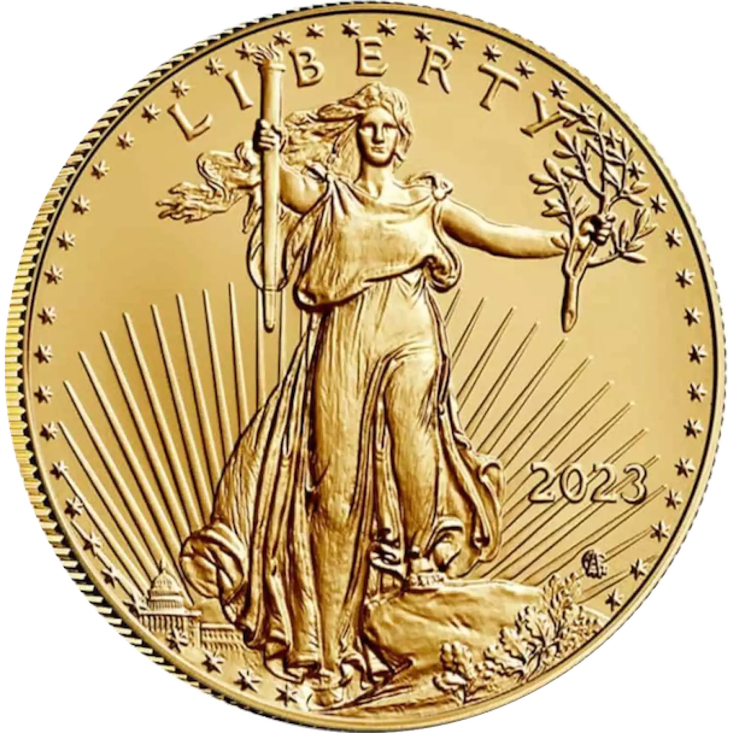 The 2023 1 oz Gold American Eagle is one of the most popular and beautiful Gold coins in the United States. This coin was introduced in 1986 by the U.S. Mint. Each 2023 1 oz American Gold Eagle contains one troy ounce of fine gold (31.1035 grams). The 2023 1 oz Gold American Eagle coins are available as bullion and proof specimens.