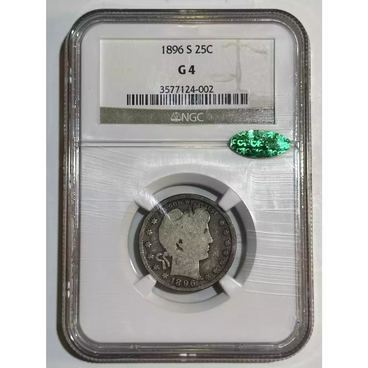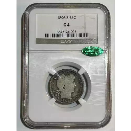 1896-S Barber Quarter NGC G-4 CAC