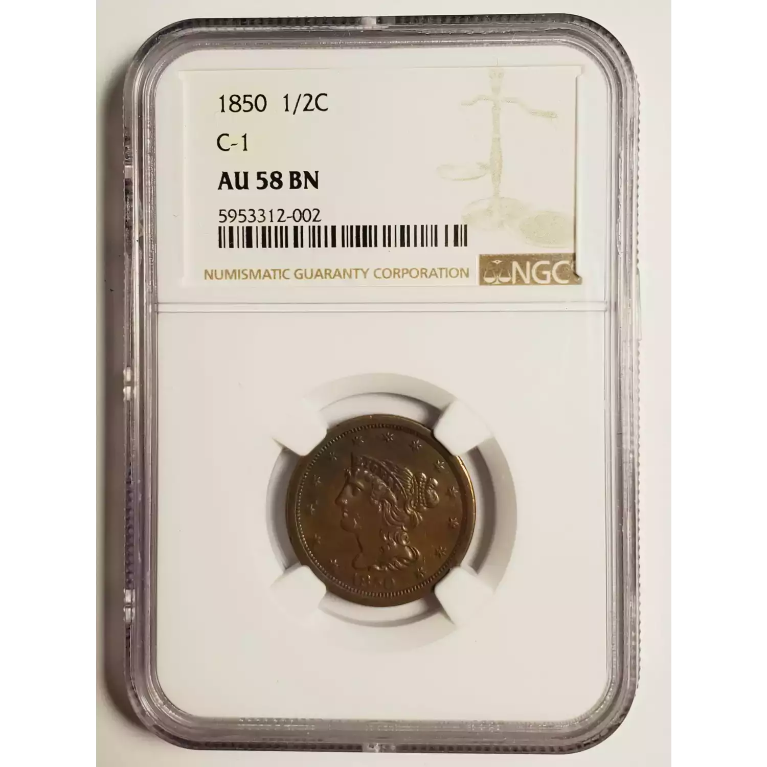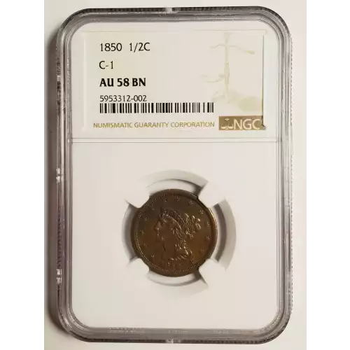 1850 Half Cents Braided Hair NGC AU-58 BN C-1