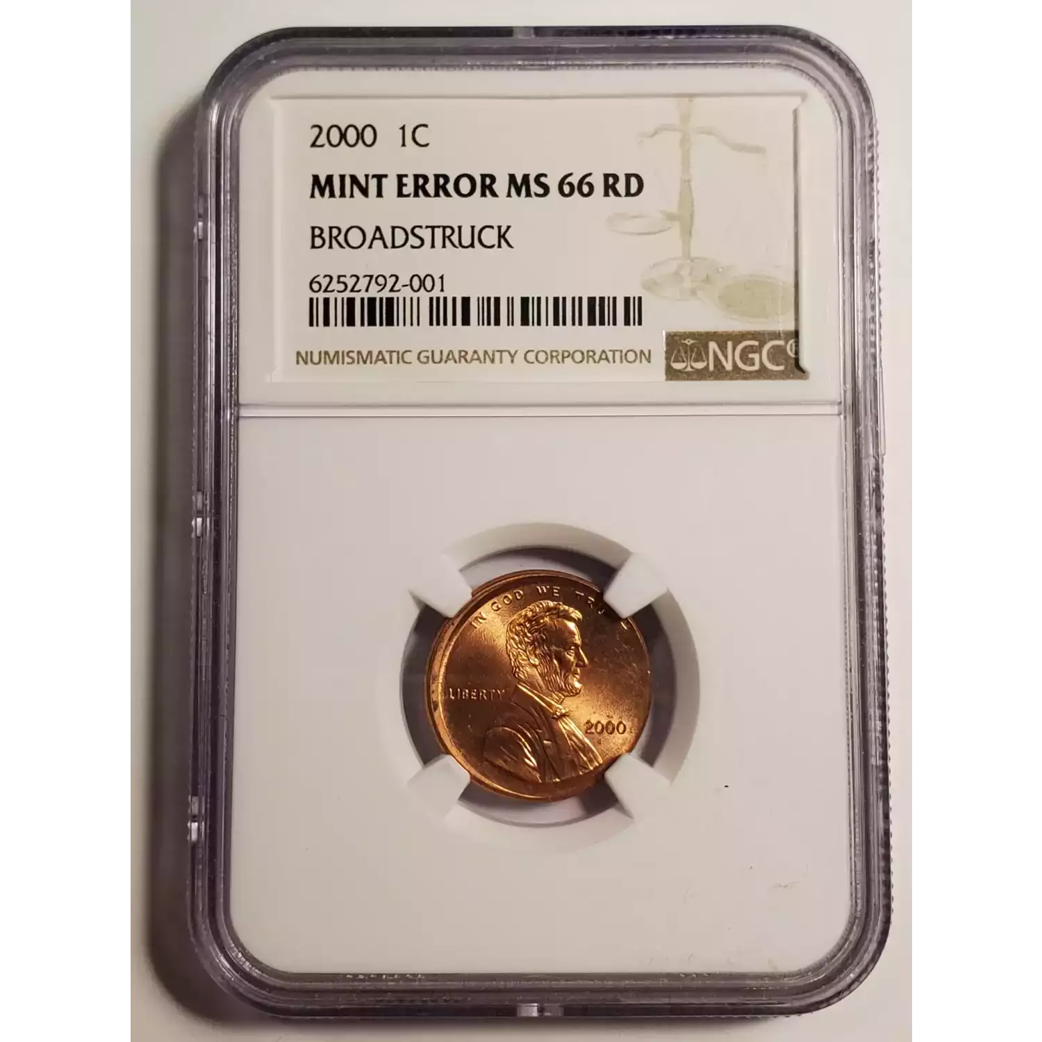 2000 Small Cents Lincoln, Memorial Reverse NGC MS-66 RD Mint Error Broadstruck