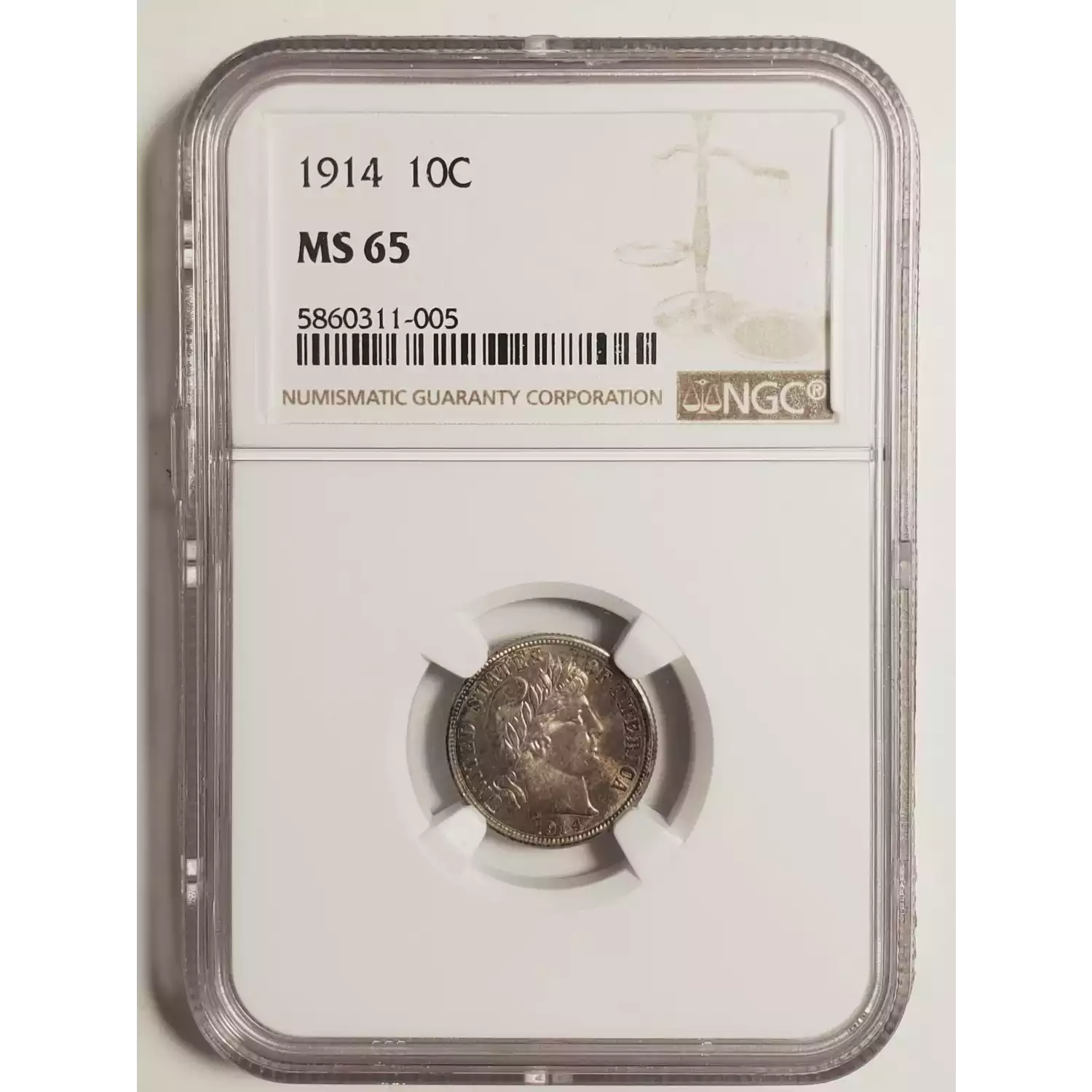 1914 Barber Dime NGC MS-65