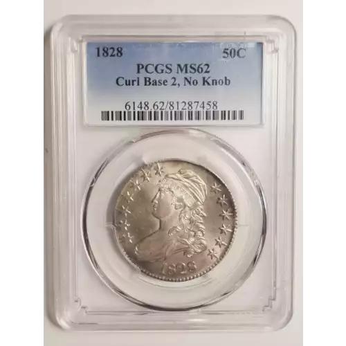 1828 Capped Bust Half Dollars PCGS MS-62 Curl 2, No Knob