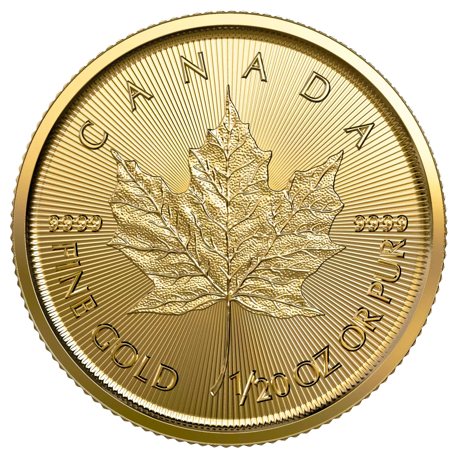 First introduced by the Royal Canadian Mint in 1979, The Canadian Gold Maple Leaf is one of the most diverse, popular bullion coins worldwide. The 2023 1/20 oz Canadian Gold Maple Leaf is the newest edition. This coin is highly popular among investors and collectors for its excellence and stunning design.