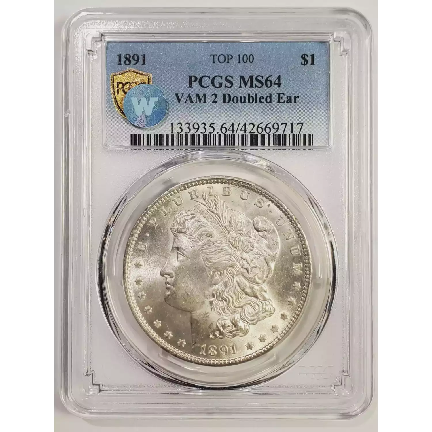 1891 Morgan Silver Dollar PCGS MS-64 VAM 2 DOUBLE EAR TOP 100 Sight White