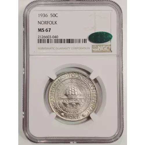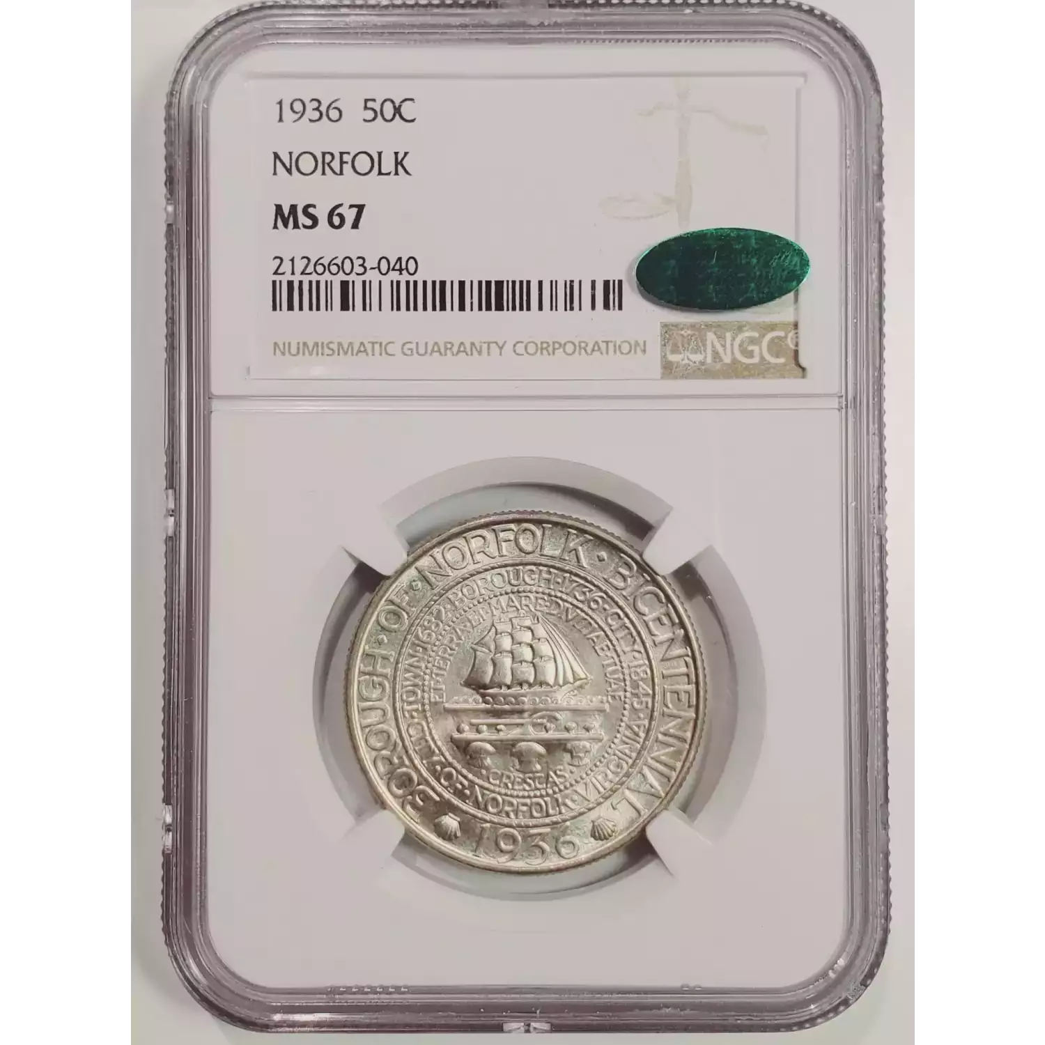 1936 Classic Commemorative Norfolk, Virginia, Bicentennial NGC MS-67 NORFOLK CAC