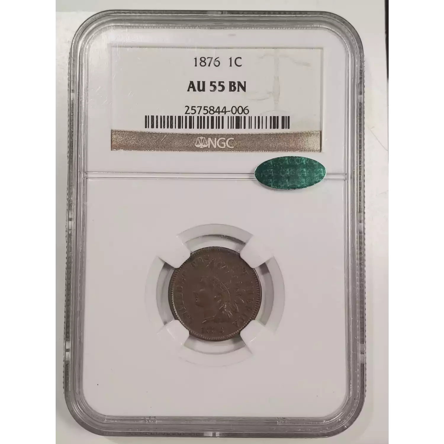 1876 Small Cents Indian Head NGC AU-55 BN CAC