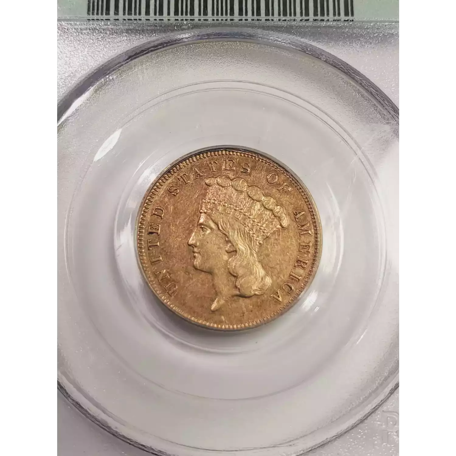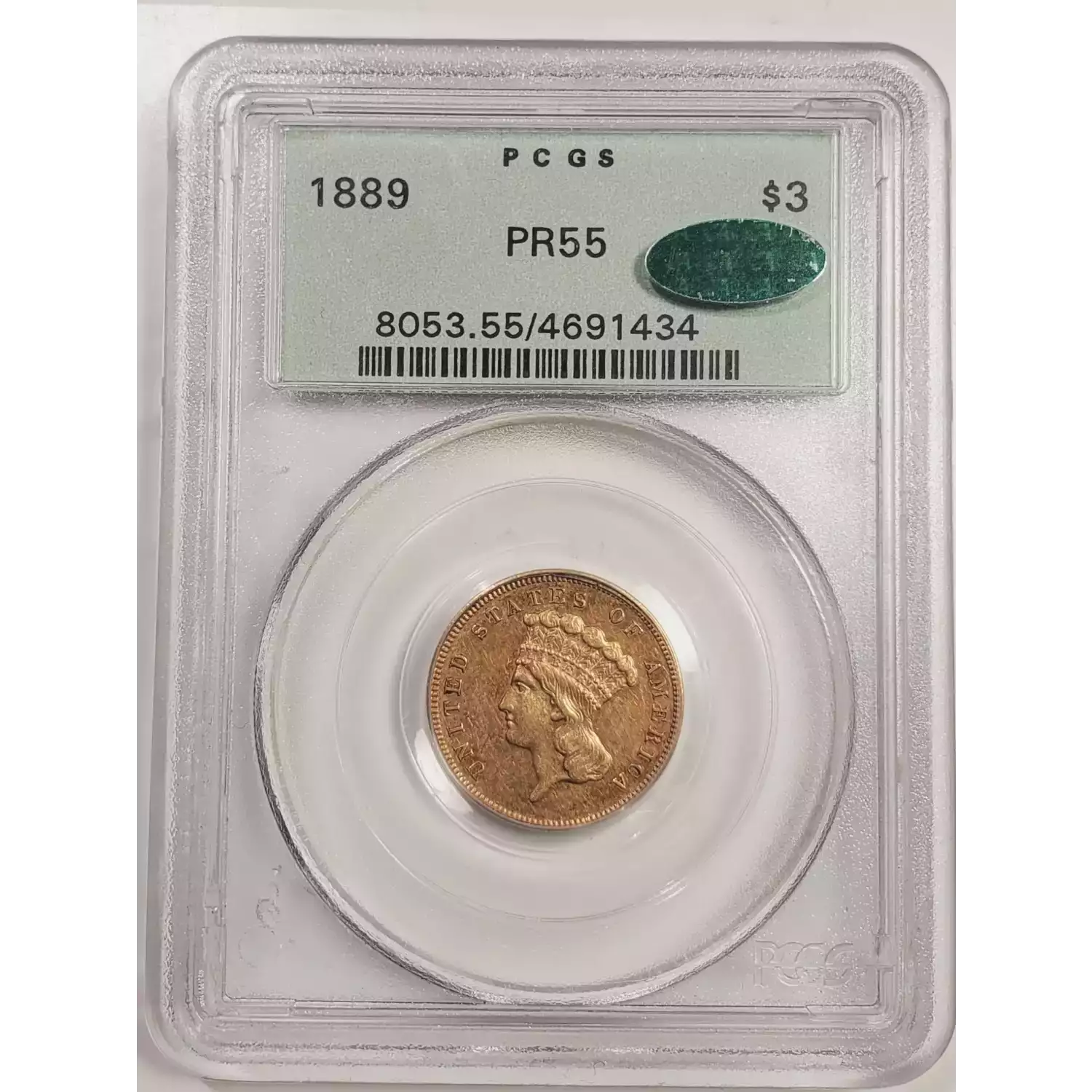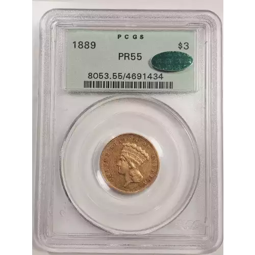 1889 Gold Three Dollars $3 Indian Princess Head PCGS PR-55 (OGH - Old Green Holder) CAC