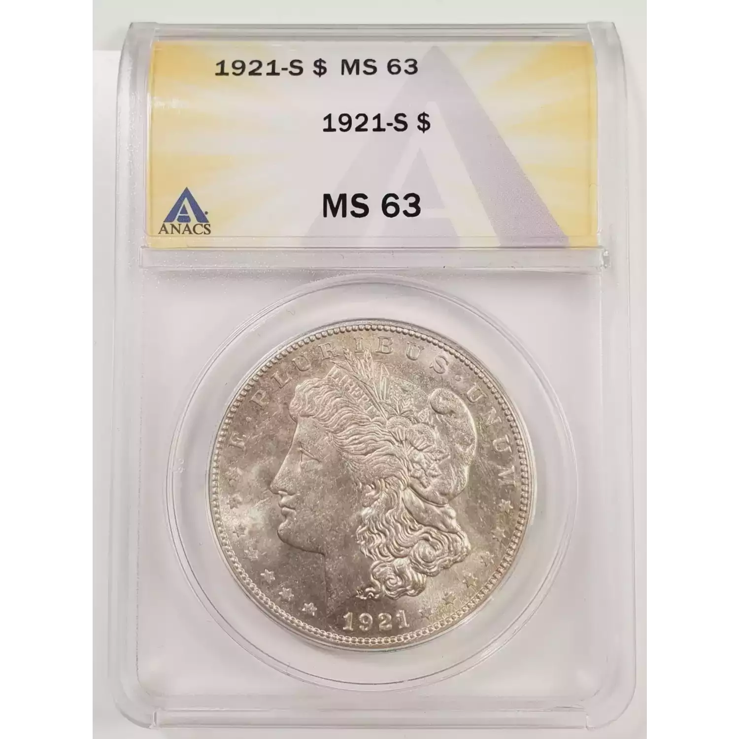 1921-S Morgan Silver Dollar ANACS MS-63