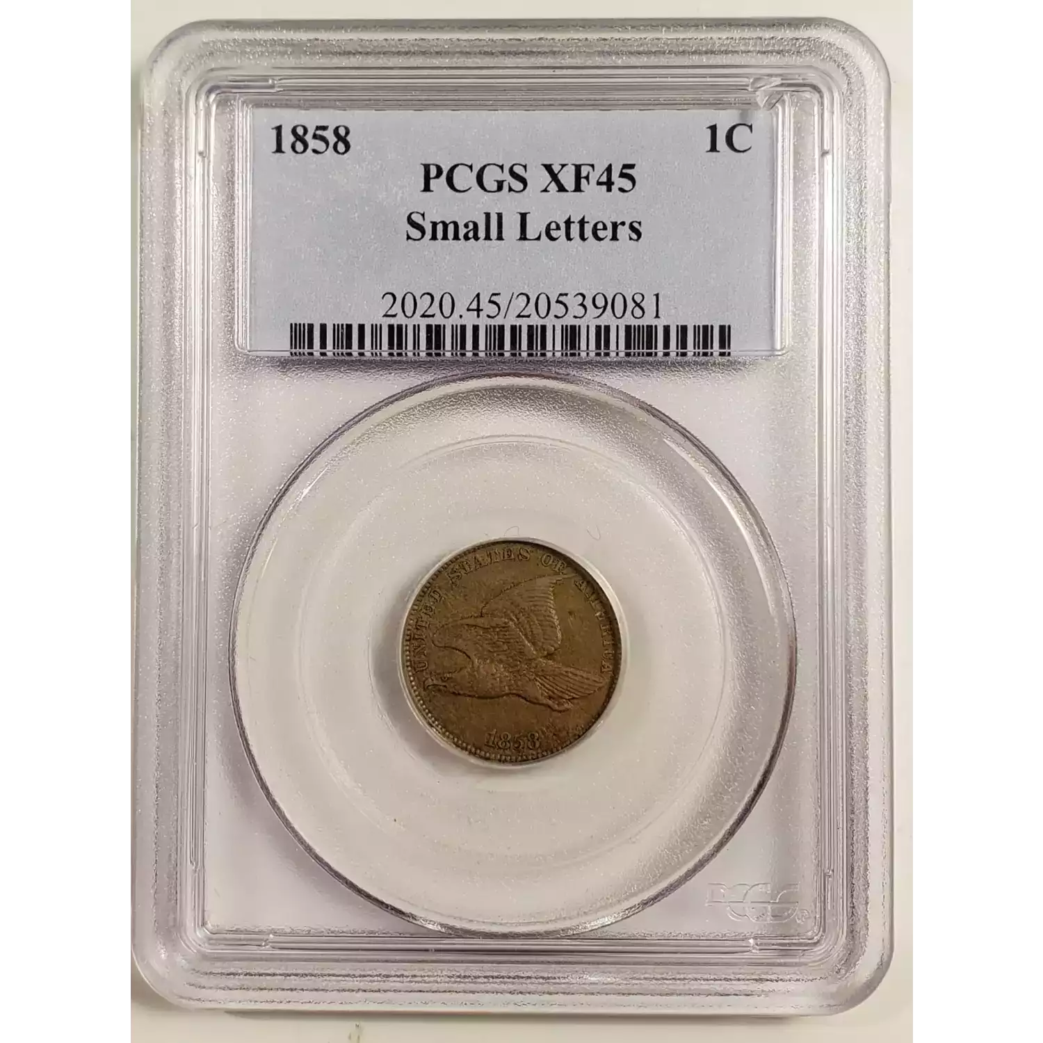 1858 Small Cents Flying Eagle PCGS XF-45 Small Letters