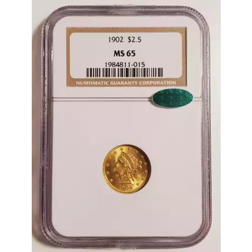 1902 $2.50 Gold Liberty Head Quarter Eagle NGC MS-65 CAC