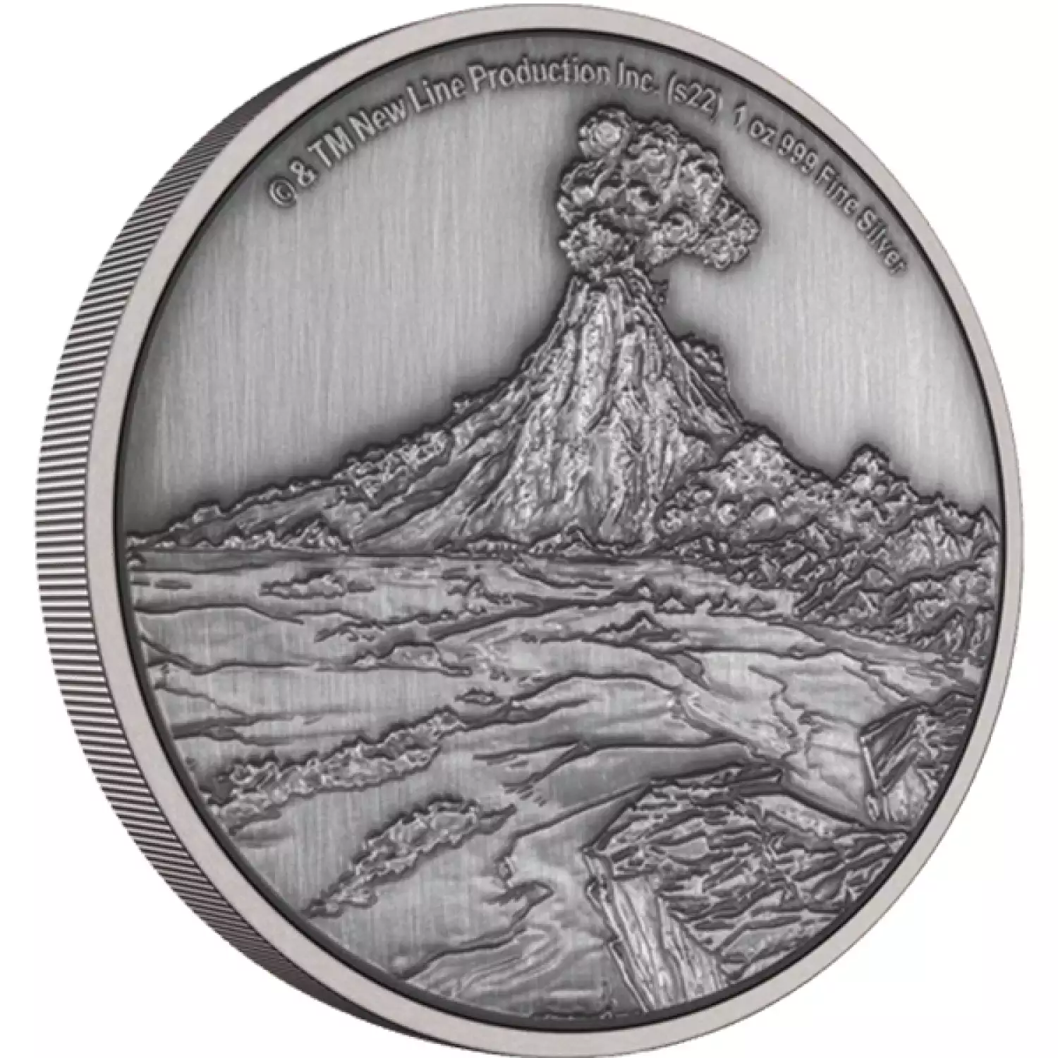 Created in partnership with Warner Bros. Consumer Products, this coin features a close-up image of the fiery volcano in Mordor, Mount Doom, from THE LORD OF THE RINGS™. Made of 1oz pure silver, it is fully engraved and antiqued with added relief, making this one impressive piece! As legal tender, the effigy of Queen Elizabeth ll is on the obverse.