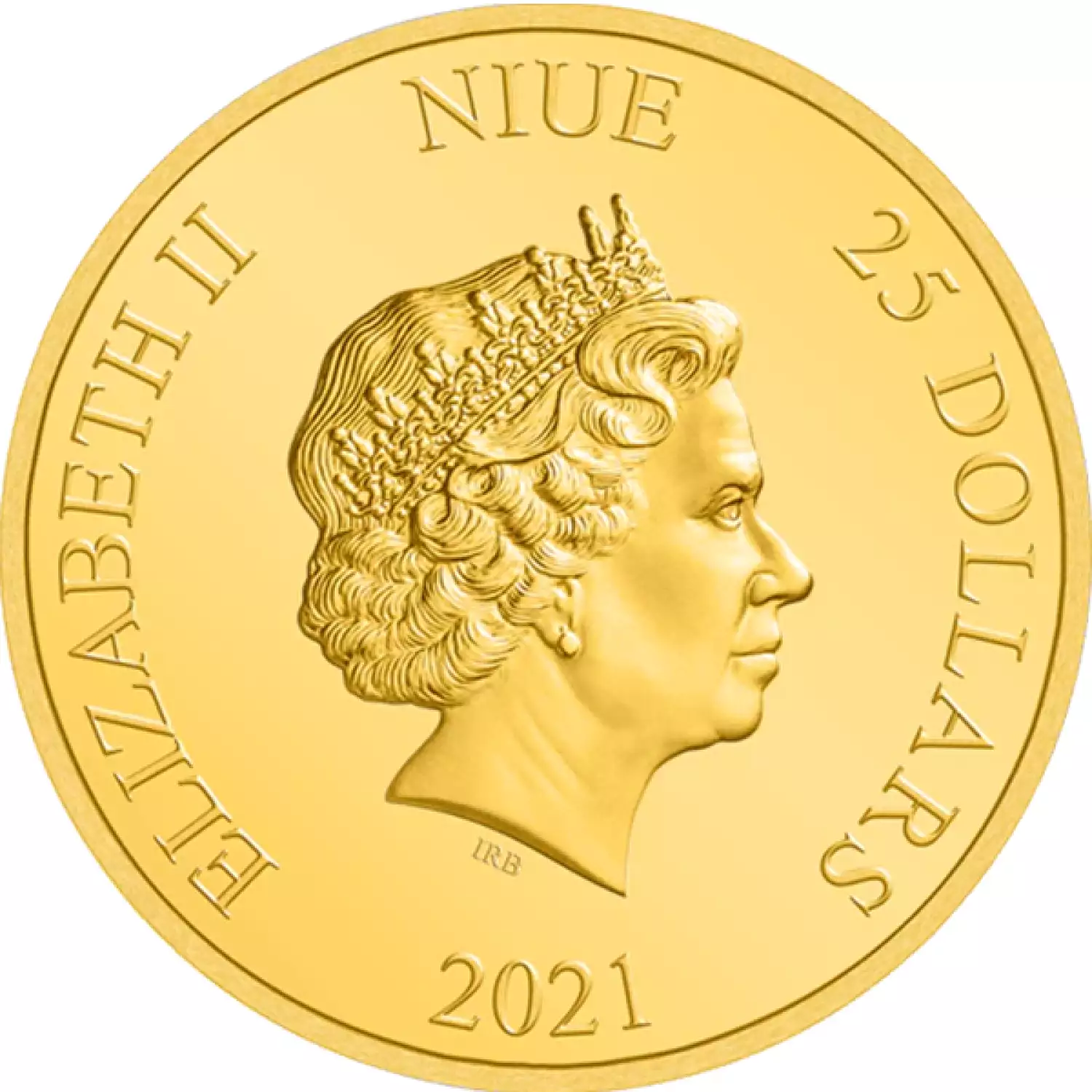 The coin arrives in a display-ready wooden coin case which is placed inside a themed box showing the original coin image, in colour, on the base. A Certificate of Authenticity, including the coin’s unique serial number, guarantees the pure quality of the gold and the limited mintage of 250 coins.
