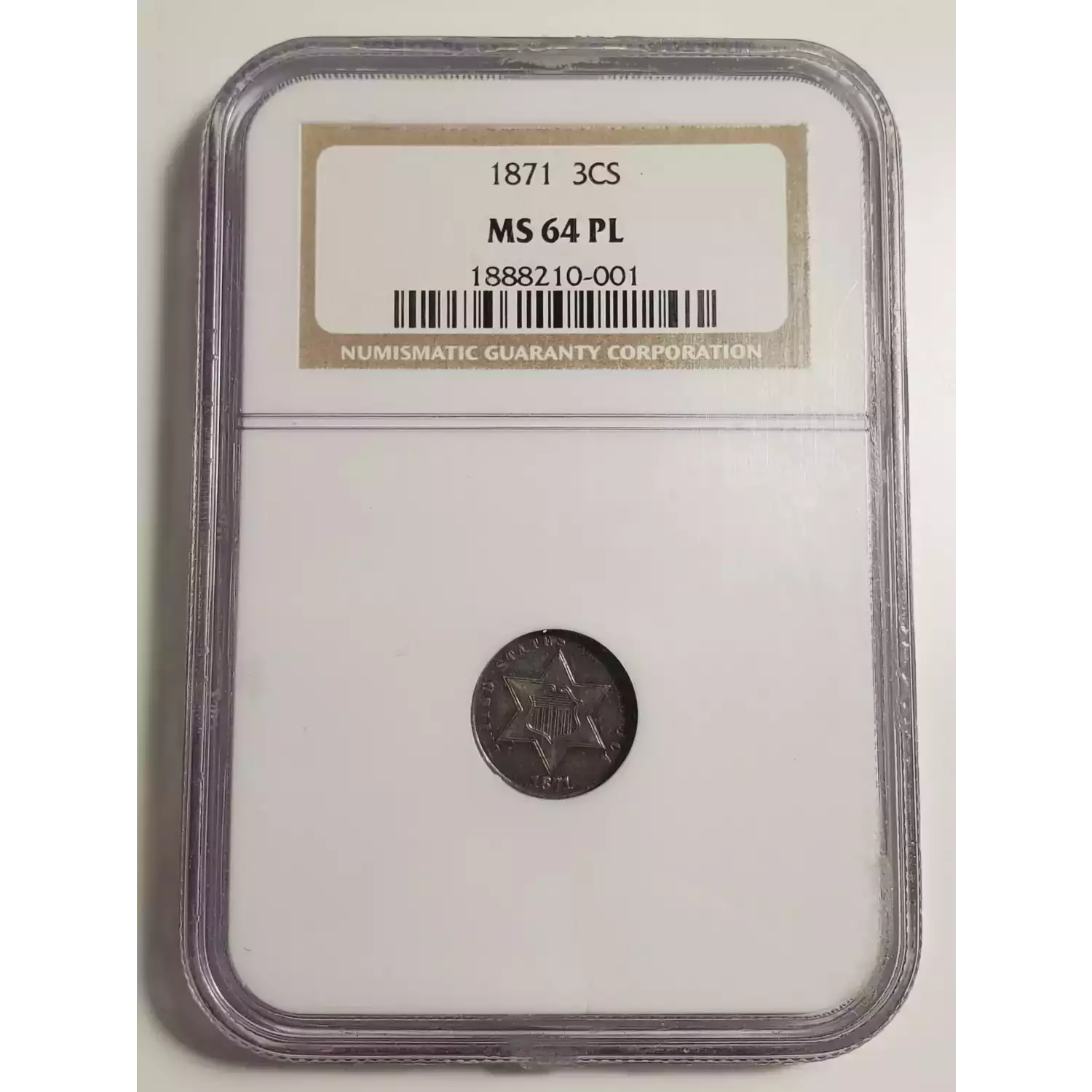 1871 Silver Three Cent Pieces - Trimes NGC MS-64 PL (Original!)