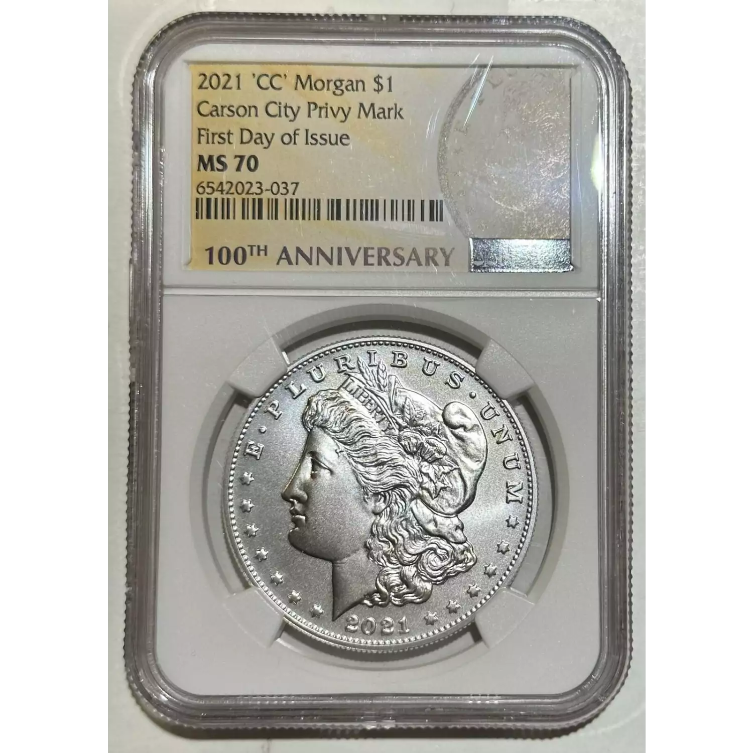 2021-CC Morgan Silver Dollar NGC MS-70 'CC' Carson City Privy Mark First Day of Issue W/OGP