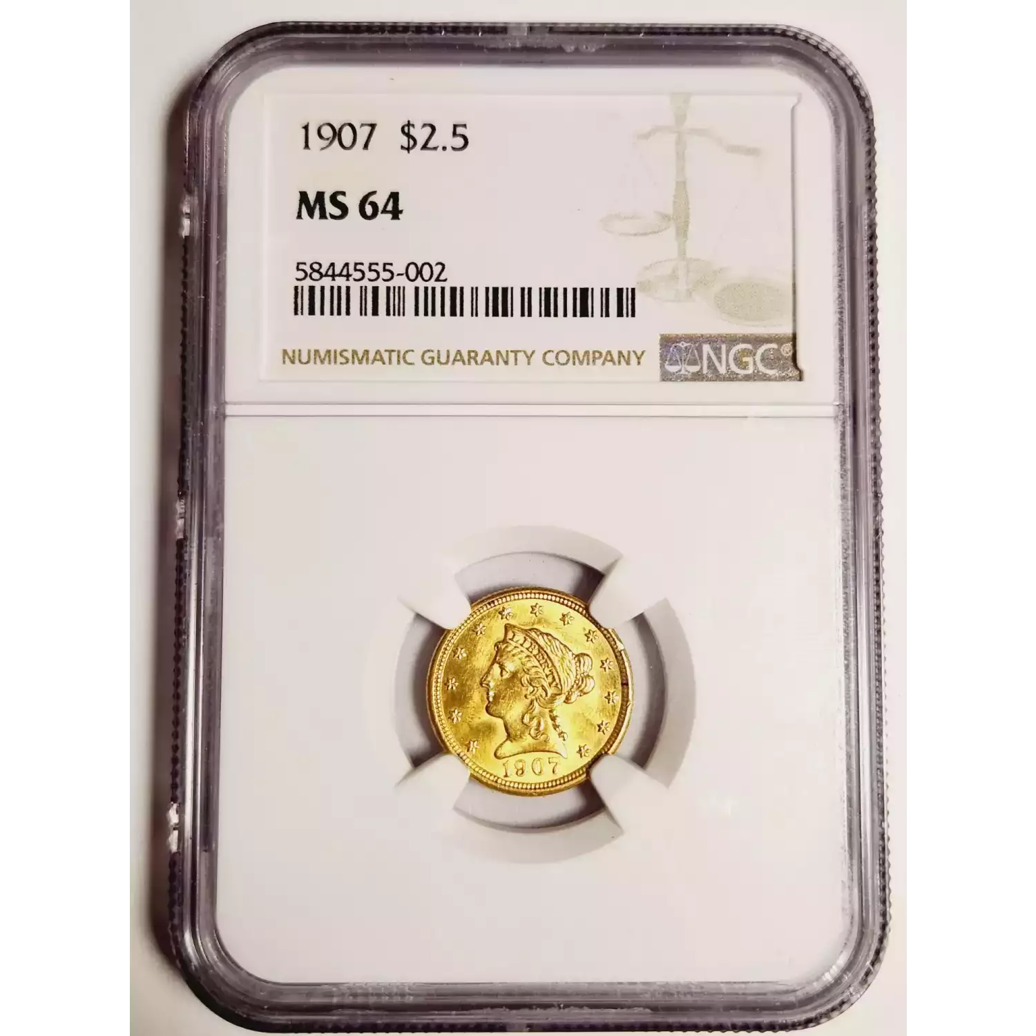 1907 $2.50 Gold Liberty Head Quarter Eagle NGC MS-64