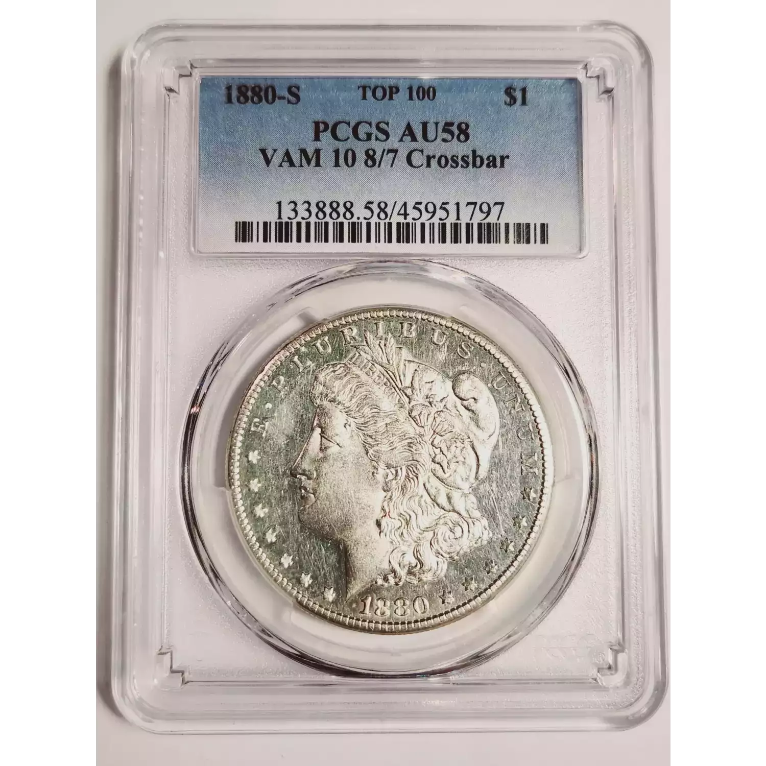 1880-S Morgan Silver Dollar PCGS AU-58 VAM 10 8/7 Crossbar - Top 100