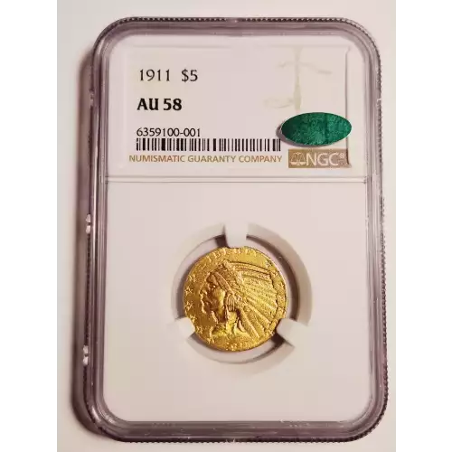 1911 Gold Half Eagles $5 Indian Head NGC AU-58 CAC