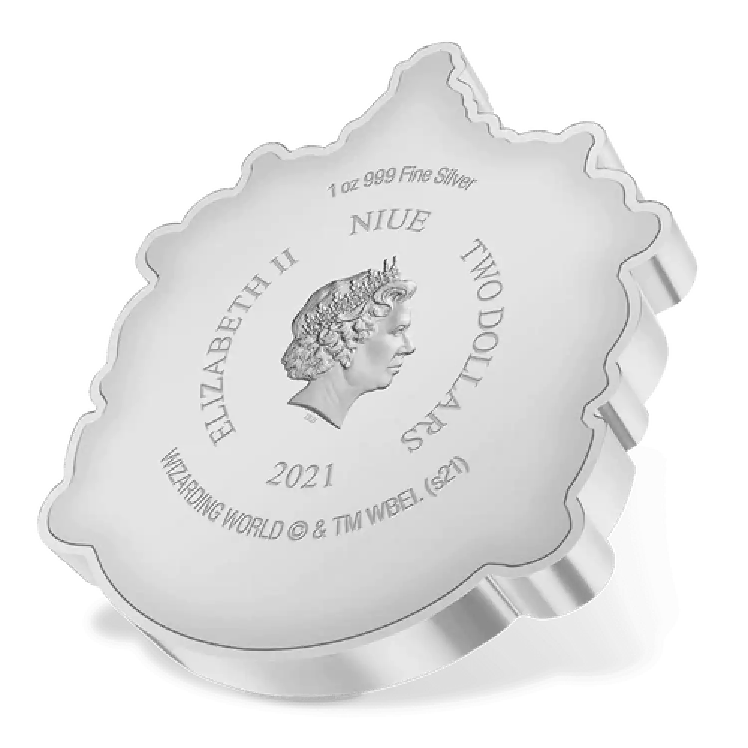 Forming part of the Hogwarts™ House Crest Collection, this unique silver coin features a red-eyed snake on a large green shield – a serpent and the colour green being representative of this house. A scroll at the bottom is engraved with the name ‘Slytherin’ in green. For contrast, the intricately engraved surround has a mirrored and frosted finish.