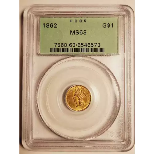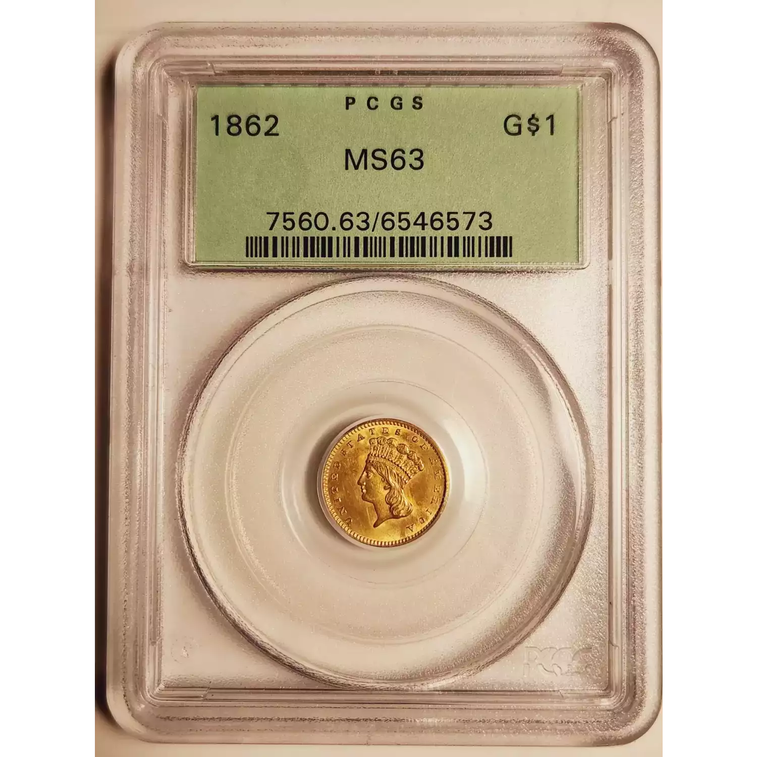1862 Indian Princess Large Head Gold Dollar PCGS MS-63 - Old Green Holder - OGH