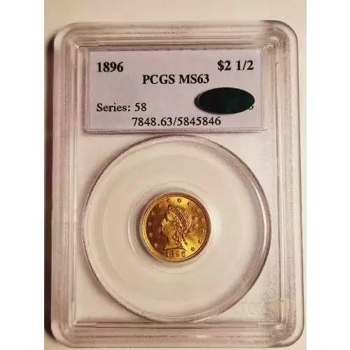 1896 $2.50 Gold Liberty Head Quarter Eagle PCGS MS-63 - Old Holder CAC