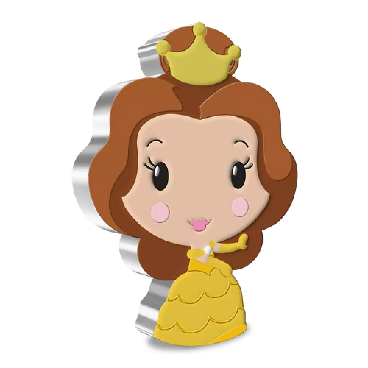 Strong and courageous Belle, from Disney’s Beauty and the Beast, features on this delightful Chibi® Coin. One ounce of pure silver has been shaped and coloured to represent the Disney Princess. It shows the beautiful Belle in her iconic yellow ballgown and matching opera gloves extending up her arms - that appear to be swinging in time with the music! Her long, brown hair cascades down her back. Despite the shape and colour of this coin, it is still legal tender; you can find the Ian Rank Broadley effigy of Her Majesty Queen Elizabeth II on the obverse of the coin and the Certificate of Authenticity on the box.