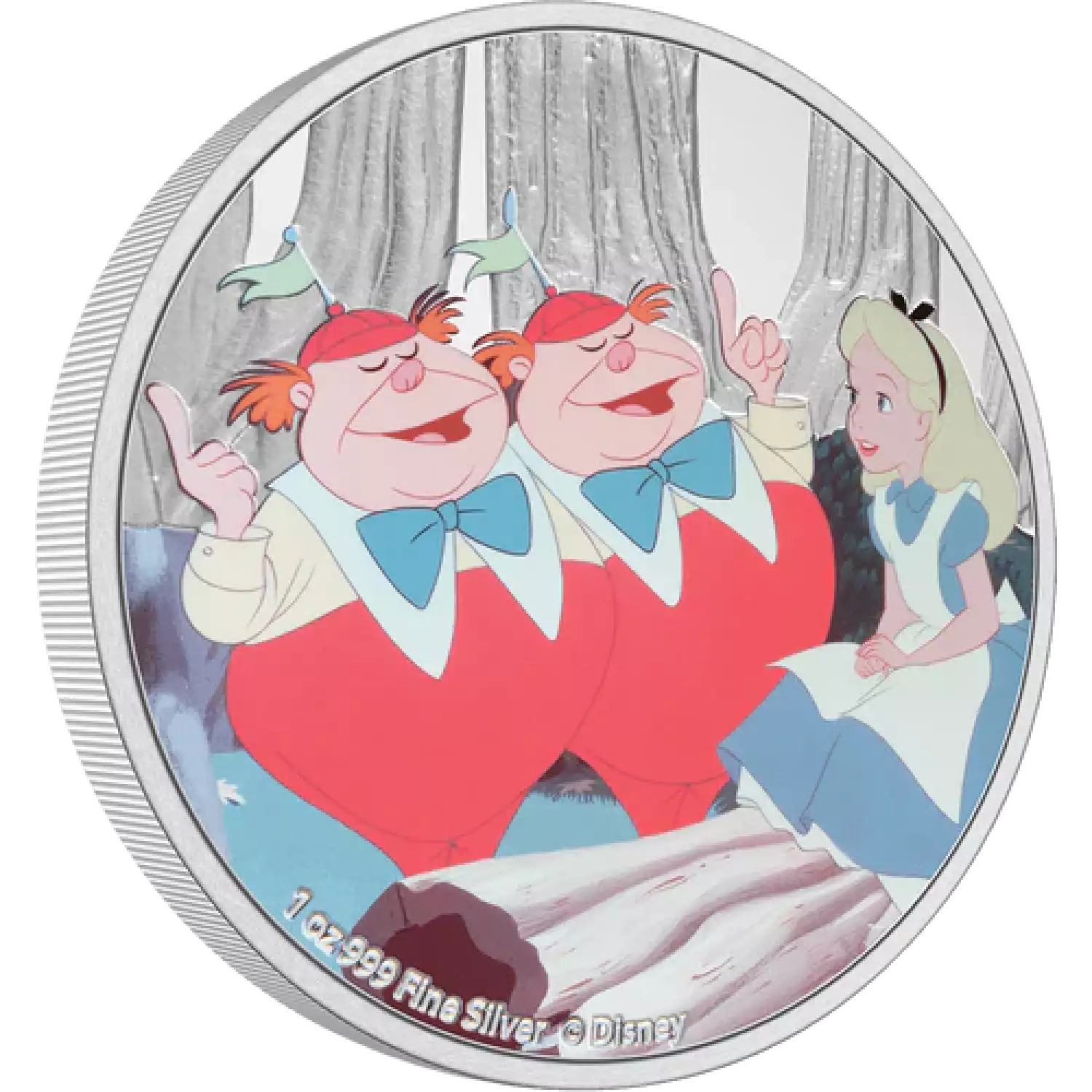 This 1oz pure silver coin features a whimsical image of Alice with the playful Tweedledee & Tweedledum. It is taken from the Disney movie Alice in Wonderland which is celebrating a 70-year anniversary, having been released in 1951! The forest in the background incorporates both frost and mirror finish. The Ian Rank-Broadley effigy of Her Majesty Queen Elizabeth II is featured on the obverse.