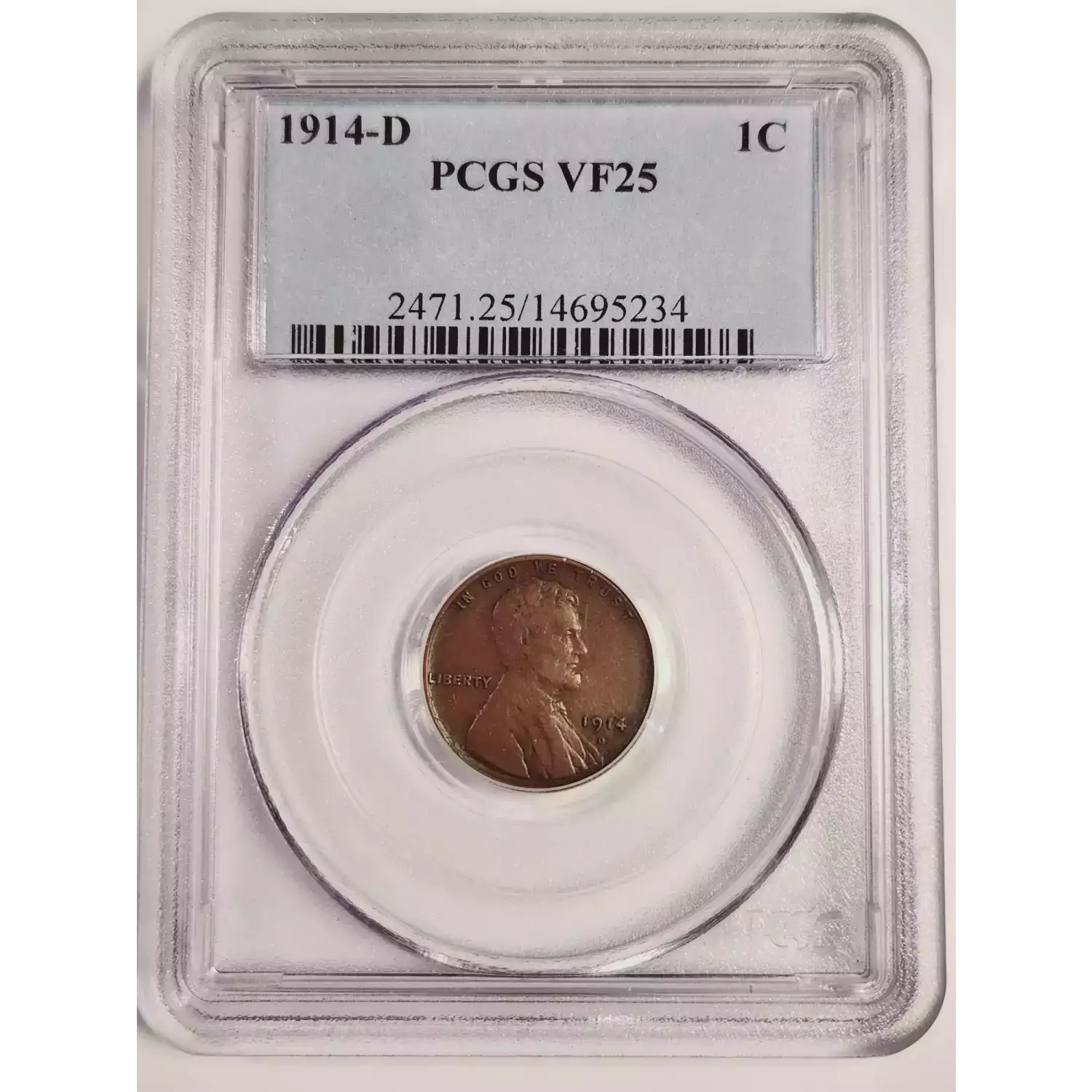 1914-D Small Cents Lincoln, Wheat Ears Reverse PCGS VF-25 BN