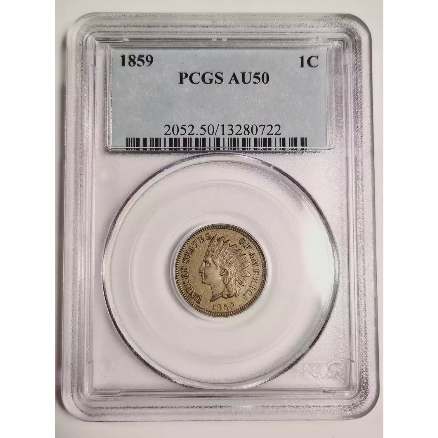 1859 Small Cents Indian Head PCGS AU-50