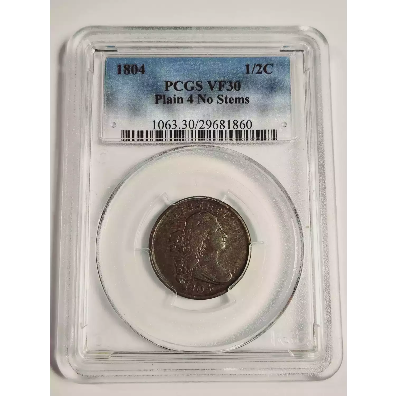1804 Half Cents Draped Bust 1800 - 08 Copper PCGS VF-30 BN Plain 4, No Stems