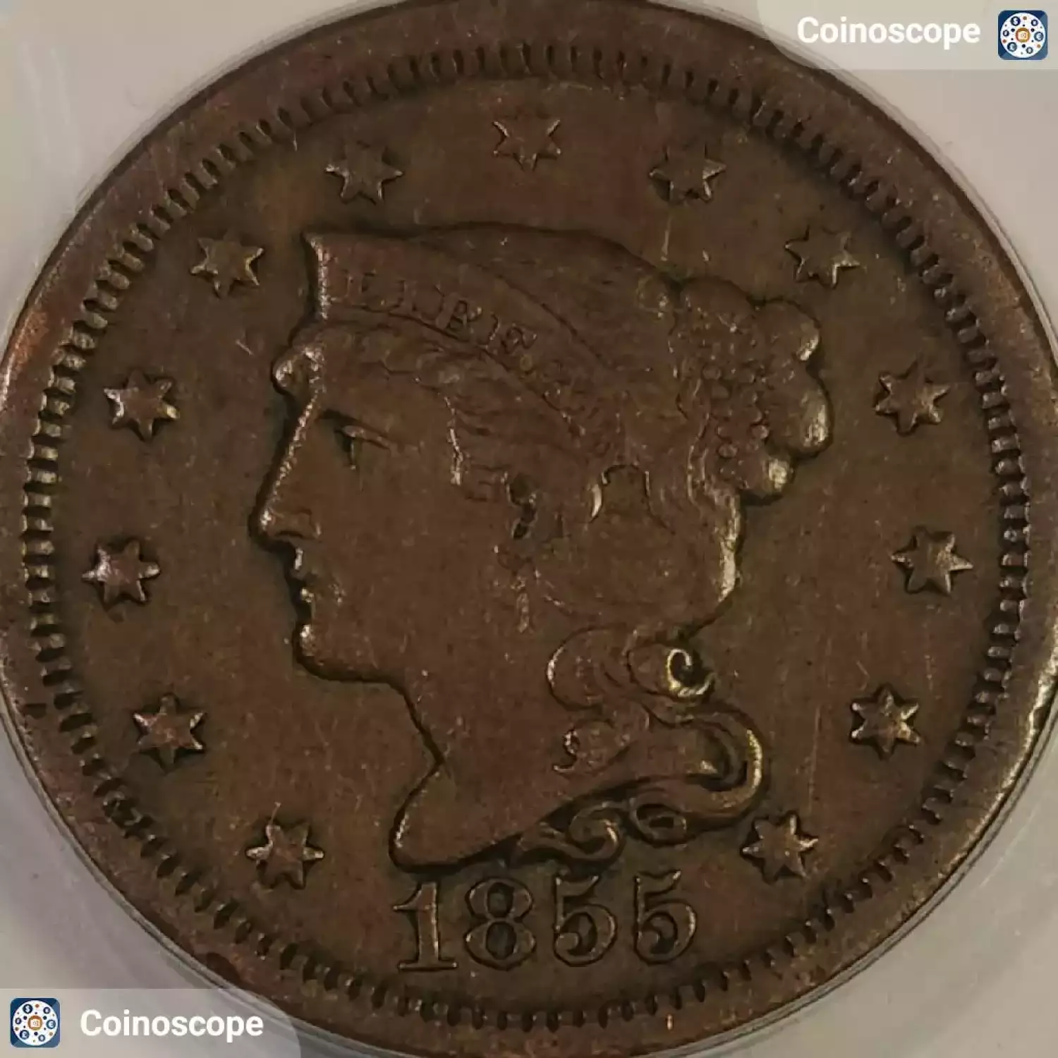 1855 Braided Hair Cent ANACS XF-45 - N-12 Upright 55