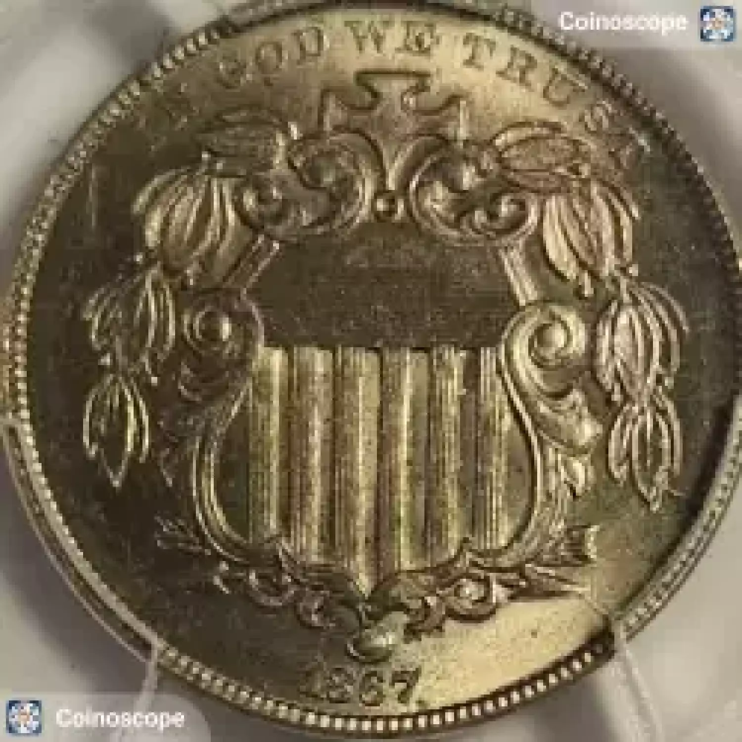 1867 Nickel Shield PCGS MS-63 Rays CAC