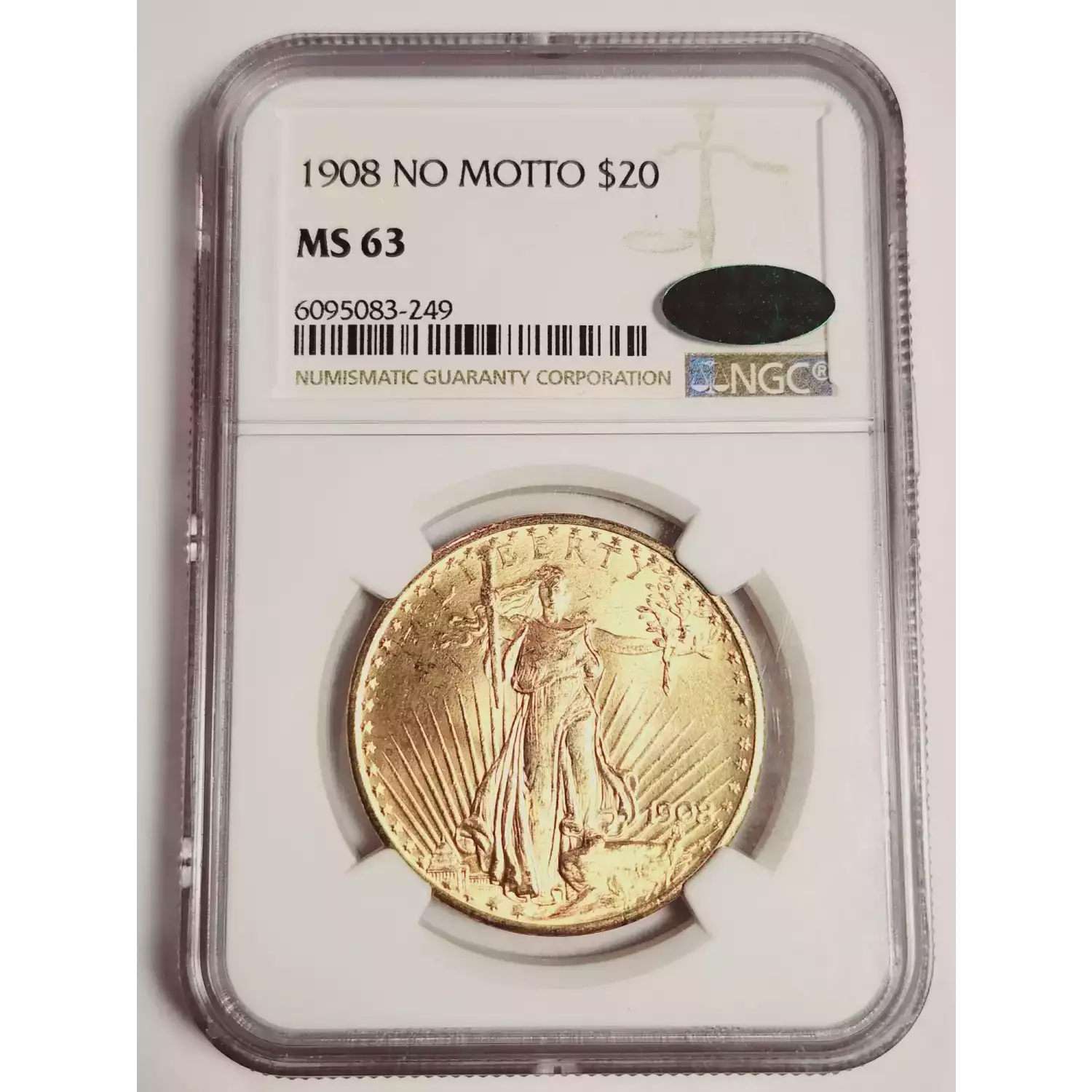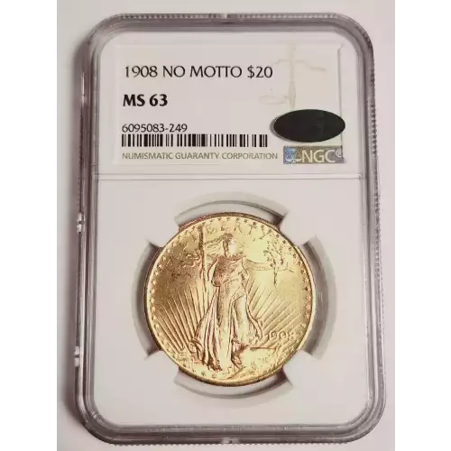 1908 Double Eagles Saint Gaudens NGC MS-63 NO MOTTO CAC